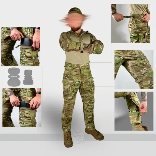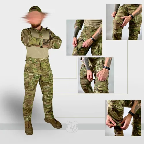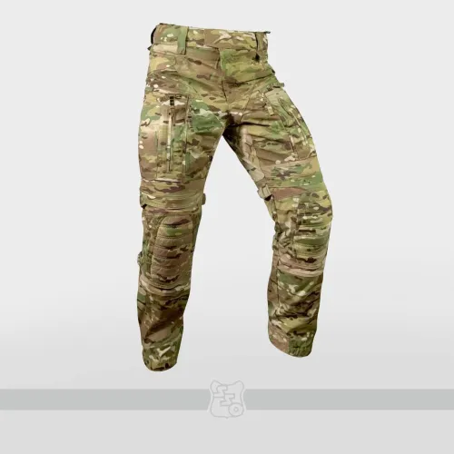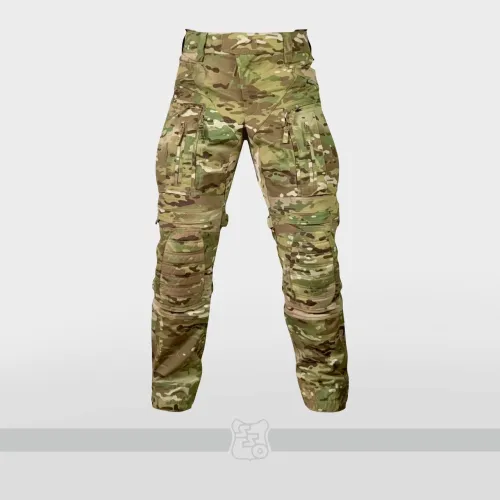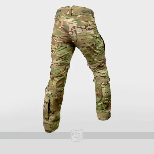 Брюки КОМБАТ PRO X являются нашей последней генерацией летних боевых брюк с интегрированной защитой коленей. • Боевые брюки имеют ряд существенных отличий от предыдущих моделей брюк как с точки зрения кроя, так и с точки зрения общего функционала. • Брюки с широким поясом, выше талии, плотно прилегающим к телу за счёт конструкции повторяющей анатомическую структуру тела. В районе поясницу пояс имеет вставку из 3D сетки, обеспечивающую идеальную посадку на операторе. С внутренней стороны пояса брюк используется силиконовая лента, препятствующая выскальзыванию термобелья или боевой рубашки из брюк. При правильном выборе размера брюки плотно облегают тело и не сползают вниз, а широкий пояс мешает подолу куртки или низу боевой рубахи задираться и выбиваться из под него. • К поясу пришито пять широких шлёвок для ремня. У передних четырех дополнительно есть петля для крепления карабинов или тренчика. • Пояс застёгивается на американскую молнию IDEAL и липучку. Идеальный вариант для ношения с ремнём. • Объём талии регулируется в рамках одного размера с помощью специальных эластичных пат и контактной ленты. • В области поясницы, пятой точки и ластовицы используется специализированная эластичная сверхпрочная вставка из ткани Spandura, что обеспечивает идеальный комфорт при носке и дополнительную вентиляцию, поскольку данная ткань имеет превосходные паропроницаемые свойства. • Вверху на бёдрах расположены два прорезных достаточно глубоких кармана, которые имеют удобный вход даже для крупной руки. В них можно разместить телефон крупного размера. Поверх карманов есть усиления из ткани Cordura Invista 500d, которые позволяют крепить внутри кармана складной нож или фонарь. • По бокам расположены два грузовых кармана без клапанов, которые имеют два входа на молнии IDEAL – горизонтальный и вертикальный, что позволяет иметь доступ в карманы из любого положения тела. • Благодаря системе складок, в пустом состоянии эти карманы не увеличивают силуэт, при этом если потребуется - имеют внушительный объём. Внутри каждого кармана нашита эластичная лента, прошитая вертикальными строчками, деля их на две ячейки предназначенных для фиксации магазина или перевязочного пакета. • Расположение карго карманов на брюках точно рассчитано для комфортного размещения внутри них магазинов АК или ИПП при нахождении оператора внутри спецтранспорта. • На передней части брюк расположена система вентиляции в виде двух карманов на американской молнии IDEAL с внутренней эластичной нейлоновой сеткой. • Интегрированная защита колена состоит из нескольких сегментов: во-первых, это ткань Cordura Invista 500d, внутренняя вшитая вставка из 3D сетки, два внутренних кармана для размещения пластиковой защиты и специализированного наколенника из пены с памятью. НАКОЛЕННИКИ G2/G3 и СПЕЦИАЛИЗИРОВАННЫЕ НАКОЛЕННИКИ ИЗ ПЕНЫ С ПАМЯТЬЮ В КОМПЛЕКТ НЕ ВХОДЯТ! • Область выше и ниже наколенника производится из вставок из эластичной сверхпрочной ткани Spandura для правильного позиционирования колена и препятствия создания натяжения в этой области. Под самим наколенником к телу установлена эластичная специальная ткань бифлекс, препятствующая натирания области колена наколенником. Карман под защитные вставки выверен такого объема, что при желании там можно размещать наколенники G3 или G4. • В пере