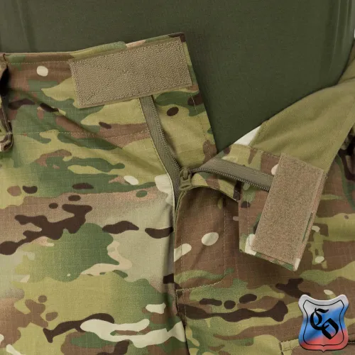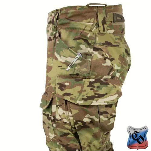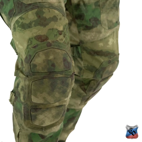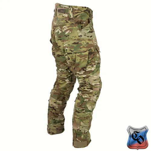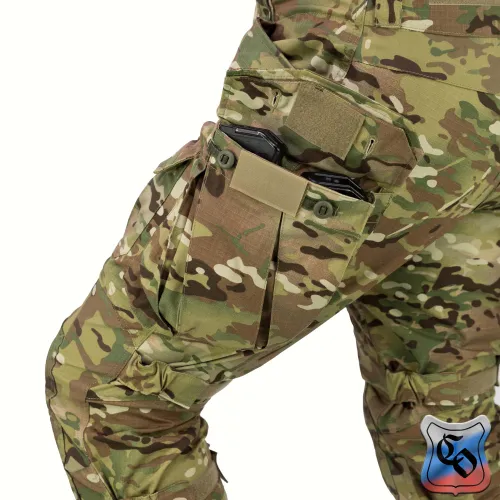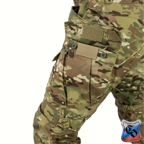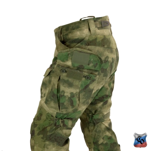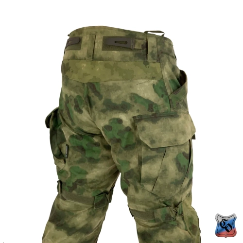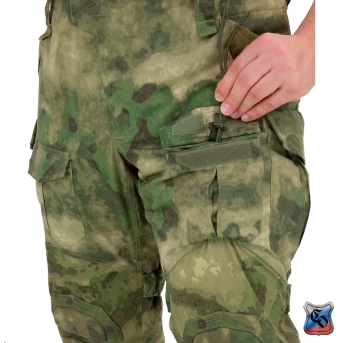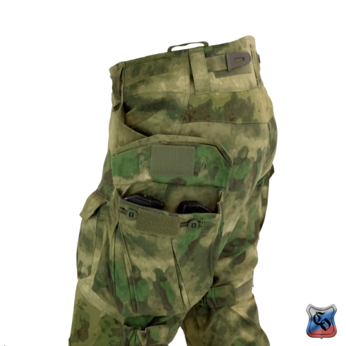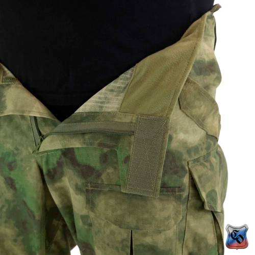 Брюки КОМБАТ PRO Z Брюки КОМБАТ PRO Z являются одной из двух вариаций нашей последней разработки в области боевых брюк. • Боевые брюки визуально напоминают всем привычные G3, однако имеют ряд существенных отличий как с точки зрения кроя, так и с точки зрения общего функционала. • Брюки с широким поясом, выше талии, плотно прилегающим к телу за счёт конструкции повторяющей анатомическую структуру тела. С внутренней стороны пояса брюк используется мягкая, отводящая лишнюю влагу ткань Tricot Brush. • При правильном выборе размера брюки плотно облегают тело и не сползают вниз, а широкий пояс мешает подолу куртки или низу боевой рубахи задираться и выбиваться из под него. • К поясу пришито пять широких шлёвок для ремня. У передних двух дополнительно есть петля для крепления карабинов или тренчика. • Пояс застёгивается на молнию и липучку. Идеальный вариант для ношения с ремнём. • Объём талии регулируется в рамках одного размера с помощью специальных эластичных пат и контактной ленты. • В области поясницы используется специализированная эластичная сверхпрочная вставка из ткани Spandura. • Вверху на бёдрах два прорезных достаточно глубоких кармана, которые имеют удобный вход лаже для крупной руки. В них можно разместить телефон крупного размера. Поверх карманов есть усиления, которые позволяют крепить внутри кармана складной нож. • По бокам расположено два грузовых кармана с клапанами. Клапаны имеют двойную застёжку – более надёжную в виде пары канадских пуговиц, а также липучку, если нужно нужно застегнуть карман на бегу. • Благодаря системе складок, в пустом состоянии эти карманы не увеличивают силуэт, при этом если потребуется имеют внушительный объём. Внутри каждого кармана нашита эластичная лента прошитая вертикальными строчками, деля их на две ячейки предназначенных для фиксации пары магазинов или перевязочного пакета. • Расположение карго карманов на брюках точно рассчитано для комфортного размещения внутри них магазинов АК или ИПП при нахождении оператора внутри спецтранспорта. • На передней части брюк есть 2 кармана на клапанах с липучкой. В них можно разместить всякие полезное мелочи, к которым требуется быстрый доступ. • Интегрированная защита колена состоит из 3х сегментов из ткани Cordura или Кордон (в зависимости от выбранного цвета) со двойным демпфером (вспененным полимером) внутри, чтобы минимизировать незащищённую область колена от возможных повреждений. • Область в районе наколенника производится из эластичной сверхпрочной ткани Spandura. • В передних накладных карманах реализована возможность регулировки наколенников по высоте для их идеальной подгонки под анатомические особенности оператора. Также подгонка осуществляется благодаря новой системе утяжки наколенника, состоящей из 4 эластичных пат на каждом из них. • На каждой половинке брюк в районе голени есть по небольшому карману с клапаном. Размер кармана достаточный, чтобы комфортно разместить в нём перевязочный пакет, жгут или другие нужные мелочи. • Внизу брюки стягиваются с помощью паты и липучки. • По низу, в самом быстроизнашиваемом месте (в районе лодыжки), внутренние швы брюк усилены накладками из ткани Cordura или Кордон (в зависимости от выбранного цвета). • Вес брюк размера 48/4 в расцветке A-Tacs FG ~ 820 г.