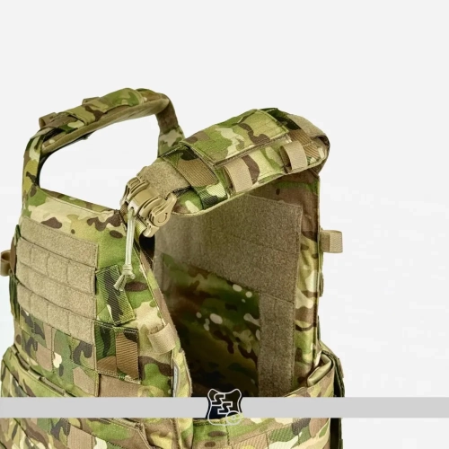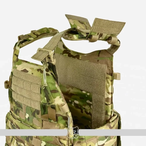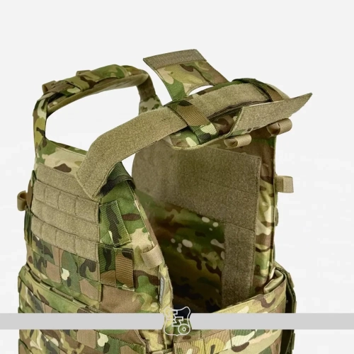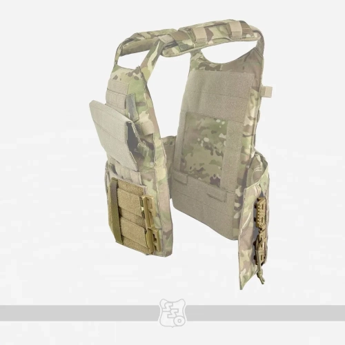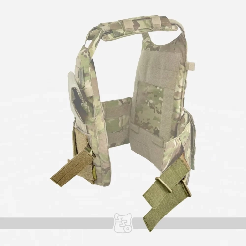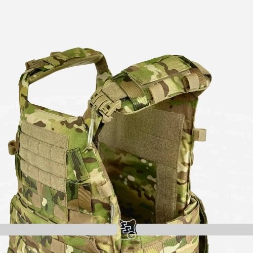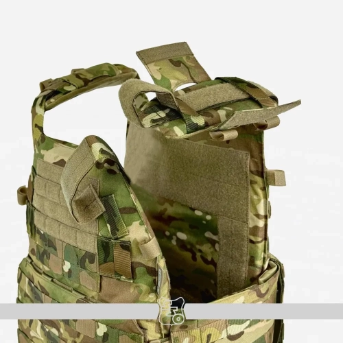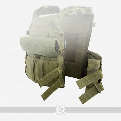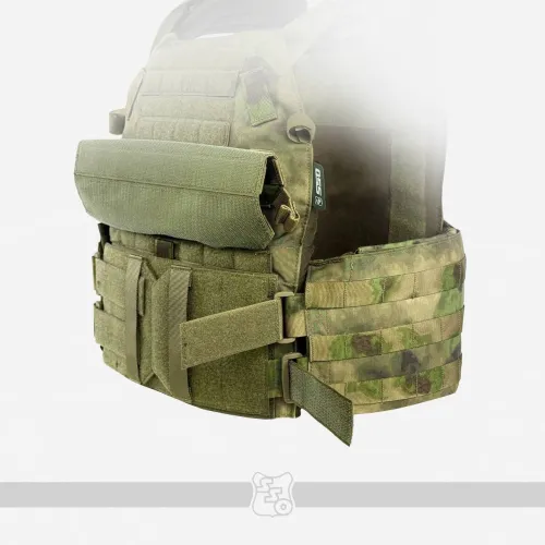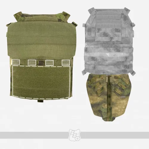 СКАЧАТЬ ЧЕРТЕЖИ ДЛЯ МЯГКИХ БРОНЕЭЛЕМЕНТОВ. РАЗМЕР M СКАЧАТЬ ЧЕРТЕЖИ ДЛЯ МЯГКИХ БРОНЕЭЛЕМЕНТОВ. РАЗМЕР L Чехол для ношения бронепанелей ПАНЦИРЬ 3.2 В сравнении с версией 3.1: - Изменена регулировка по объему камербандов: появилась возможность регулировки на себе, не снимая плитник. - Изменена плечевая система - новая эргономичная подушка со специальной высококачественной пеной ЭВОЛОН. - Новая система установки быстросбросов, при которой мы избавились от двухщелевой пряжки, которая могла мешать прикладке. - Добавлены горизонтальные крепления плиты: при ношении более узких плит появилась возможность отрегулировать плиты по центру. - Под передней панелью добавлен сквозной карман на липе для размещения защиты паха/абдоминального модуля/другого снаряжения, при этом передняя панель останется пустой и крепится теперь в этот же карман. - Убраны фастексы, но добавлены вертикальные стропы МОЛЛЕ для размещения съемных передних панелей через ремонтный фастекс. - Немного изменен задний плейт, конструкция стала более эргономична (но надо учитывать, что баллистика от версии 3.1 не подойдет). - Изменена система установки плит и баллистики по принципу Панцирь Pro, что позволяет сделать процесс установки проще, сохранив надежность удержания плит и баллистических пакетов. Обновлённая, лёгкая версия одного из наиболее популярных на сегодняшних дней плейтов (минималистичных бронежилетов). Плейт создан с учётом обратной связи, которую компания получает от бойцов из зоны СВО. • Чехол ПАНЦИРЬ предназначен для ношения бронеплит типа Гранит, SAPI и мягких противоосколочных бронеэлементов (арамид или СВМПЭ). Чехол производится в двух размерах. Размер М под плиты Гранит второго размера (31,4 х 26,5 см). L под плиты Гранит третьего размера (34 х 26,5 см). • Чехол состоит из передней и задней панели для размещения бронеплит и противорикошетных пакетов. • Габариты жилета подобраны таким образом, чтобы с одной стороны он не сковывал движения военнослужащего и обеспечивал необходимую вентиляцию, а с другой стороны обеспечивал защиту наиболее жизненно важных органов. Это становится особенно актуально в условиях повышенной температуры и влажности. • На передней панели в районе груди есть ячейки Molle для крепления дополнительного снаряжения. Поверх ячеек нашита липучка для размещения патчей и неймтапов. • Для фиксации мундштука от питьевой системы, в верхней части передней панели пришит ремень с липучкой. • По бокам основного отсека пришиты шлёвки для крепления PTT, либо тангенты от радиостанции. • На спине расположены: эвакуационная петля, Molle ячейки для фиксации продовольственной сумки, чехла под гидросистему или штурмового рюкзака, а также клапан дающий доступ к системе регулировки длины камербандов. Верхние три ряда ячеек покрытых липучкой для установки опознавательных знаков. • Камербанды обшиты Molle ячейками для размещения боекомплекта, аптечки и прочего снаряжения. Во внутренние карманы устанавливаются противоосколочные пакеты. • Для удобства надевания и снятия бронежилета, крепление камербандов на липучку можно заменить на креплением с помощью быстросбросов. • Для удобства надевания и снятия бронежилета, на плечевые лямки можно установить быстросбросы, фастексы или пряжку ЗУБР шириной 38 мм. • На внутренней части передней и задней панели, а также на к