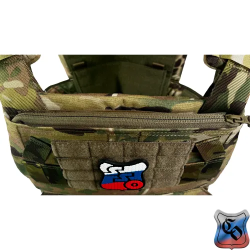 Чехол для ношения бронепанелей ПАНЦИРЬ PRO mod.2 Рады представить обновленную версию Панцирь PRO mod.2 в размере M и L. Панцирь PRO mod.2 M идеально подходит для сотрудников от 44 до 48 размера включительно и позволяет почувствовать работу полукорсета. Панцирь PRO mod.2 L идеально подходит для сотрудников от 50 до 58 размера включительно и позволяет почувствовать работу полукорсета. В сравнении с версией Панцирь PRO - Улучшена система крепления камербандов для их большей эластичности. - Увеличен объем нагрудного кармана. - Добавлена съемная молния на нагрудный карман для удобства эксплуатации. - Под передней панелью добавлен сквозной карман на липе для размещения защиты паха/абдоминального модуля/другого снаряжения, при этом передняя панель остается пустой и крепится теперь в этот же карман. - 3D сетка теперь закрыта велюровым велкрополотном. - Изменен угол входа лямок в передний плейтбэг. - Изменена система крепления лямки по V-образному принципу, таким образом повышена прочность и комфорт эксплуатации. - Добавлены горизонтальные крепления плиты: при ношении более узких плит появилась возможность отрегулировать плиты по центру. - Изменена плечевая система - новая эргономичная подушка со специальной высококачественной пеной ЭВОЛОН. - Добавлена возможность установки боковых плит в камербанд. - Теперь баллистические пакеты в камербанд можно устанавливать как сверху, так и с торца камербанда. - Сделали эргономичный направляемый вход на переднем плейтбэге для хвоста камербанда, усиленный пластиком. Сместили его ближе к центру переднего плейтбэга для лучшей развесовки жилета. • Чехол предназначен для ношения бронеплит типа Гранит, SAPI и мягких противоосколочных бронеэлементов (арамид или СВМПЭ). • Чехол состоит из передней и задней панели для размещения бронеплит и противорикошетных пакетов, регулирующихся по длине плечевых лямок, а также боковых поясных обхватов с отсеками для размещения мягкой противоосколочной защиты. • Габариты жилета подобраны таким образом, чтобы с одной стороны он не сковывал движения военнослужащего и обеспечивал необходимую вентиляцию, а с другой стороны обеспечивал защиту наиболее жизненно важных органов. Это становится особенно актуально в условиях повышенной температуры и влажности. • В передней и задней панелях есть по 2 отсека. Первый для размещения бронепластины, второй для арамидного или СВМПЭ пакета. Плита внутри основного отсека фиксируется с помощью вертикального клапана, застёгивающегося на липучку. Сам отсек также застёгивается на липу. • Снаружи кармана расположены ячейки Molle для крепления дополнительного снаряжения. Поверх ячеек нашита липучка для размещения патчей и неймтапов. • На спине расположены: две эвакуационные петли, Molle ячейки для фиксации продовольственной сумки, чехла под гидросистему или штурмового рюкзака. Верхние три ряда ячеек покрыты липучкой для установки опознавательных знаков. • Система эвакуации раненого оператора с поля боя состоит из двух дублирующих друг друга петель. Первая – это классическая эвакуационная петля, которая расположена в верхней части спинного модуля бронежилета и зафиксирована на липучку. Вторая, вырывная, что обеспечивает большее удобство при эвакуации раненого, а также позволяет проводить её в положении лёжа, чтобы минимизировать силуэт бойца, ко