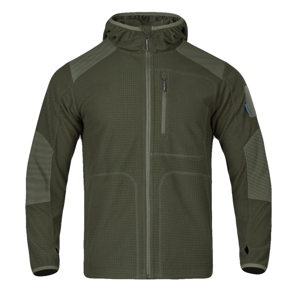 Особенности: * Эргономичный крой. * Кофта с капюшоном. * Теплая кофта из воздухопроницаемого материала. * Усиленная молния. Назначение: стрельба, отдых на природе, скалолазание, город, бизнес, поездки на работу, походы, кемпинг. Характеристики: Состав: Основной материал: 100% полиэстер. Кокетка: 100% нейлон. * кокетка - это деталь задней части изделия, которая пришивается к стойке воротника, полочкам, спинке и рукавам. Температурный режим: 5℃ - 20℃.
