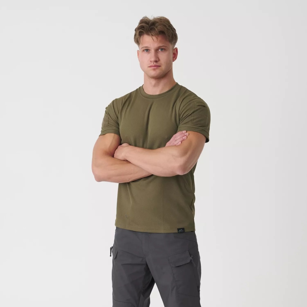 Тактическая футболка из полиэстера с термоактивной технологией TopCool, которая обеспечивает отвод влаги и излишнего тепла. Оснащена двумя карманами на плечах с велкро панелями для персонализации. Специальные петли для очков. Состав: 100% полиэстер, TopCool Вес: 226 г.
