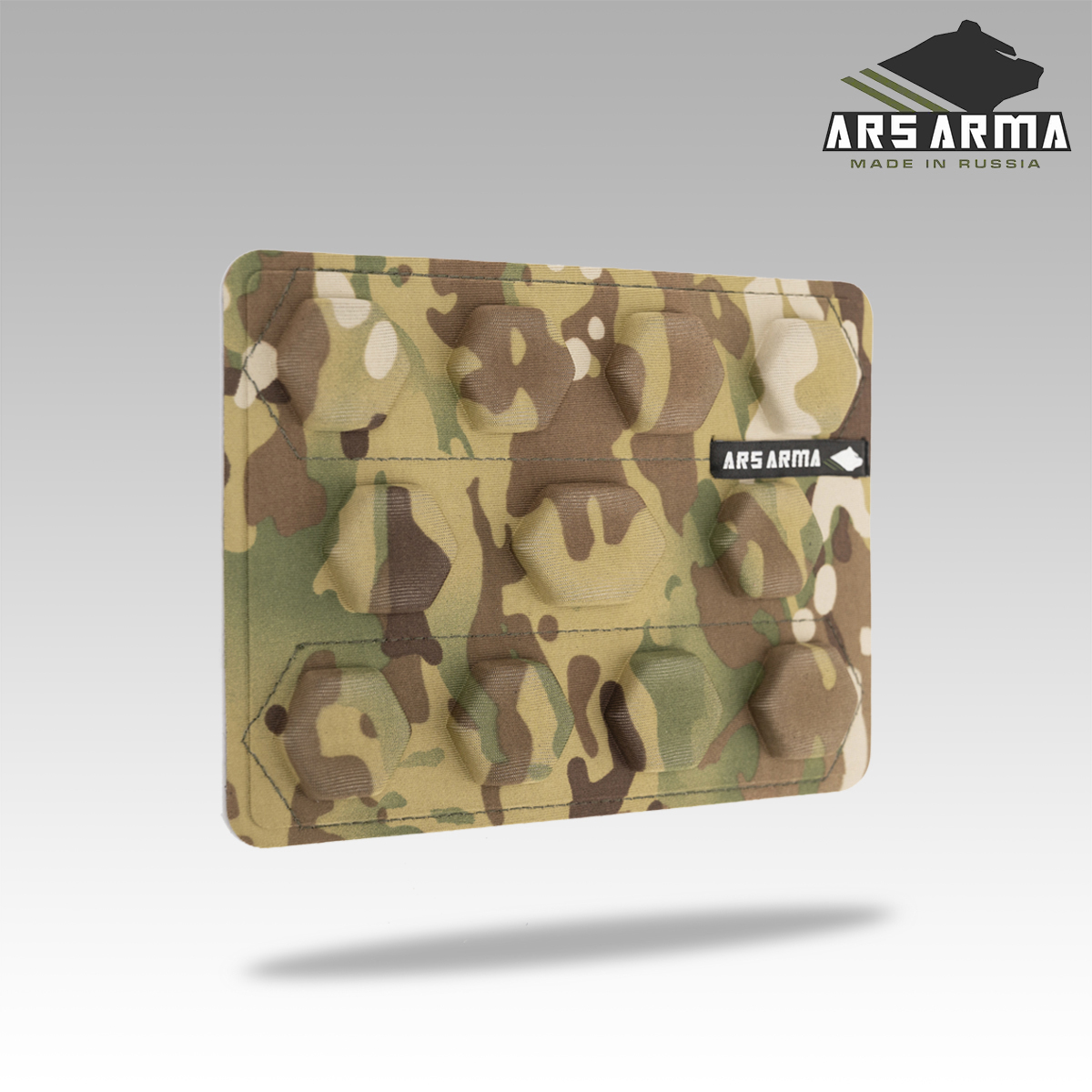 Предназначен для установки на камербанд бронежилета. Разработан для вентиляции пространства между телом и жилетом, для снижения запреградного воздействия при попадании пули или осколка в бронежилет, повышает комфорт при использовании бронежилета. Для дизайна за основу взят шестиугольник(гексагон,сота), это обеспечивает следующие преимущества: ● Сквозная вентиляция в 4 стороны, движение воздуха не ограничено одним вектором, тем самым обеспечивается более эффективные отвод влаги и тепла ● Большая площадь контакта с поверхностью КАП что в связке с оптимально подобранной плотностью материала обеспечивает максимальный комфорт при ношении Основой КАП HEXS является материал ЭВА, это современный технологичный материал, с очень широкой сферой применения благодаря своим выдающимся характеристикам: широкий диапазон рабочих температур, не впитывает влагу, пластичность, амортизация и стойкость к нагрузкам, долговечность, гигиеничность и гипоаллергенность, низкий вес. Кратко об отстреле: Текстовые испытания КАП на видео в рамках баллистического комплекса, состоящего из плиты, арамидного мягкого пакета БР1 и КАП, показали соответствие стандартам, деформация стенда была в допустимых требованиями диапазонах с существенным запасом для баллистических комплексов по классам защиты БР4-БР5. Также смотрите инфографику по отстрелу приложенную к данной новости. Характеристики: ● Материал изготовления: основа ЭВА, ткань 100% полиэстер ● Габариты: Ш200хВ150 мм ● Вес: 50 гр пара ● Толщина: 12,5 мм ● Эффективные отвод испарений и теплоотвод ● Повышенный комфорт носки бронежилетов ● Текстильное покрытие КАП способствует потоотводу ● ИК ремиссия для расцветок MC, FG Размерность: универсальный