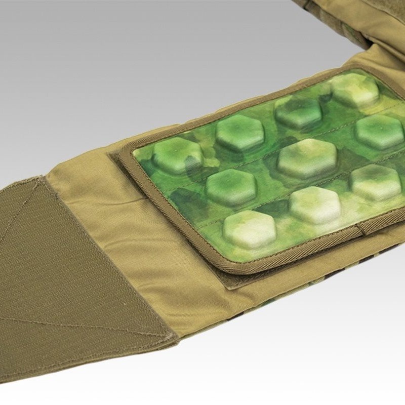 Разработан для вентиляции пространства между телом и жилетом, для снижения запреградного воздействия при попадании пули или осколка в бронежилет, повышает комфорт при использовании бронежилета.