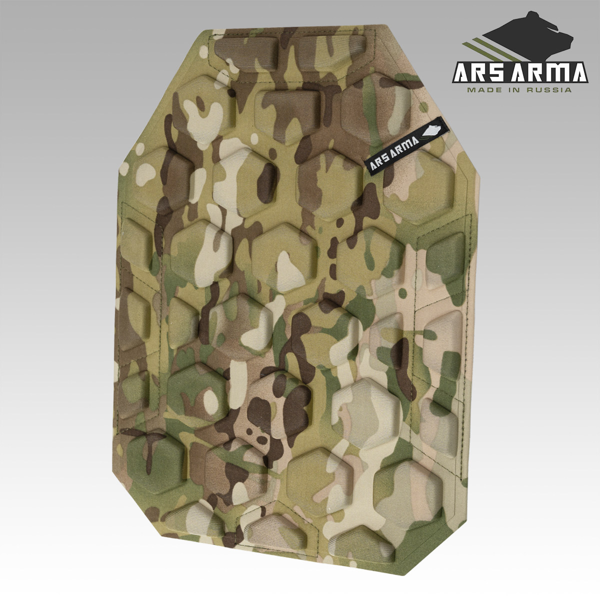 Предназначен для установки на грудную и спинную панели бронежилета. Разработан для вентиляции пространства между телом и жилетом, для снижения запреградного воздействия при попадании пули или осколка в бронежилет, повышает комфорт при использовании жилета. Для дизайна за основу взят шестиугольник(гексагон,сота), это обеспечивает следующие преимущества: ● Сквозная вентиляция в 4 стороны, движение воздуха не ограничено одним вектором, тем самым обеспечивается более эффективные отвод влаги и тепла ● Большая площадь контакта с поверхностью КАП что в связке с оптимально подобранной плотностью материала обеспечивает максимальный комфорт при ношении Основой КАП HEXS является материал ЭВА, это современный технологичный материал, с очень широкой сферой применения благодаря своим выдающимся характеристикам: широкий диапазон рабочих температур, не впитывает влагу, пластичность, амортизация и стойкость к нагрузкам, долговечность, гигиеничность и гипоаллергенность, низкий вес. Кратко об отстреле: Текстовые испытания КАП на видео в рамках баллистического комплекса, состоящего из плиты, арамидного мягкого пакета БР1 и КАП, показали соответствие стандартам, деформация стенда была в допустимых требованиями диапазонах с существенным запасом для баллистических комплексов по классам защиты БР4-БР5. Также смотрите инфографику по отстрелу приложенную к данной новости. Характеристики: ● Материал изготовления: основа ЭВА, ткань 100% полиэстер ● Габариты: Ш255хВ335 мм ● Вес: 200 гр пара ● Толщина: 10,5 мм ● Эффективные отвод испарений и теплоотвод ● Повышенный комфорт носки бронежилетов ● Текстильное покрытие КАП способствует потоотводу ● ИК ремиссия для расцветок MC, FG Размерность: универсальный