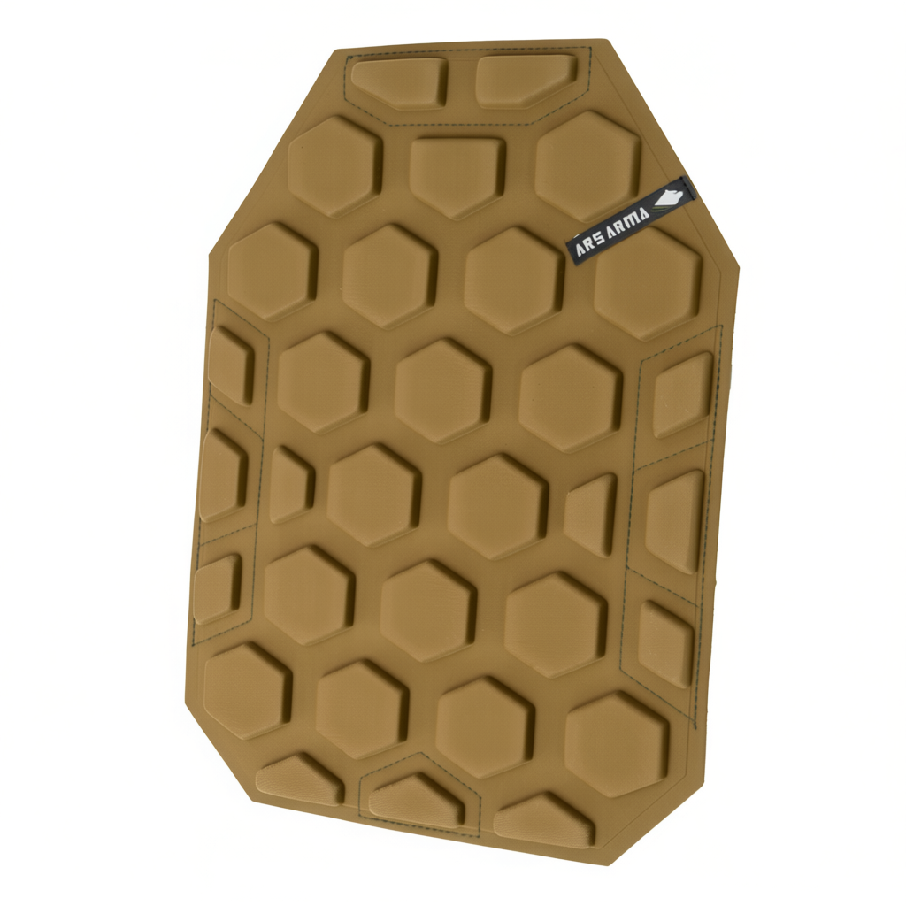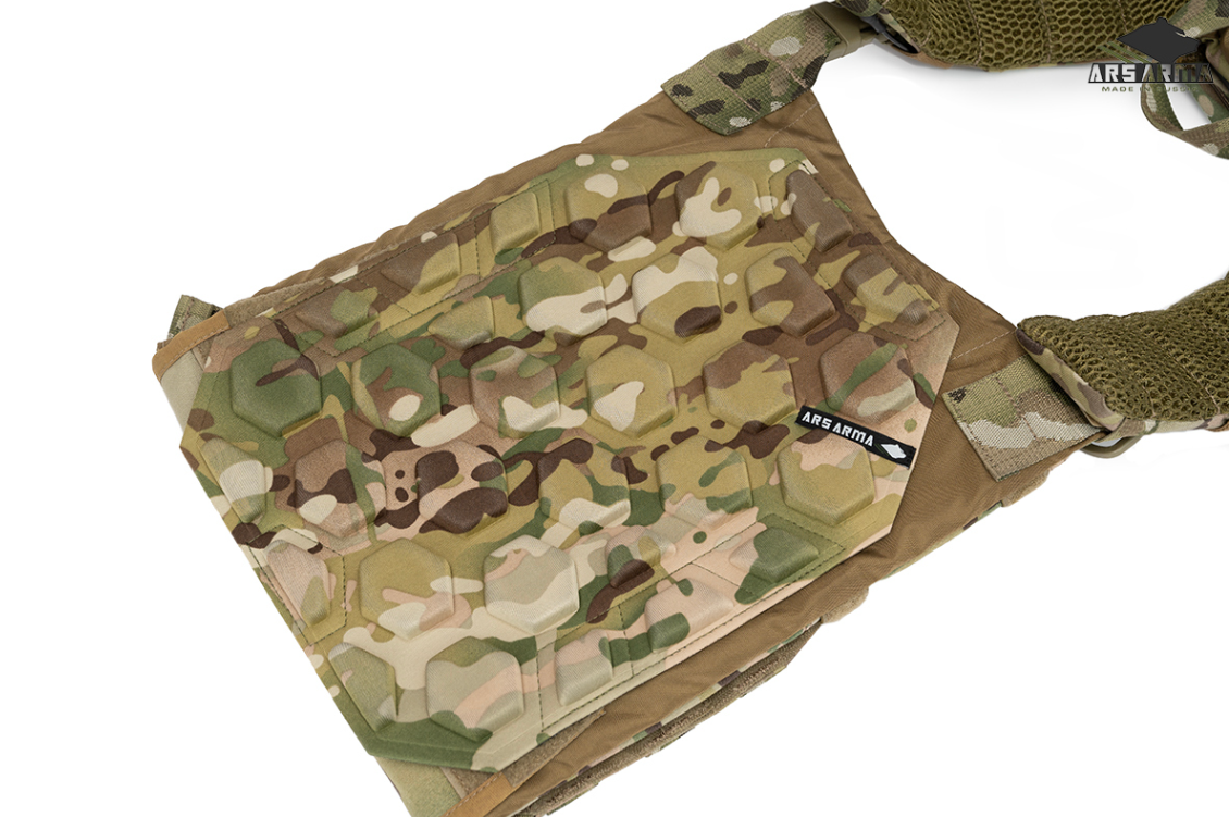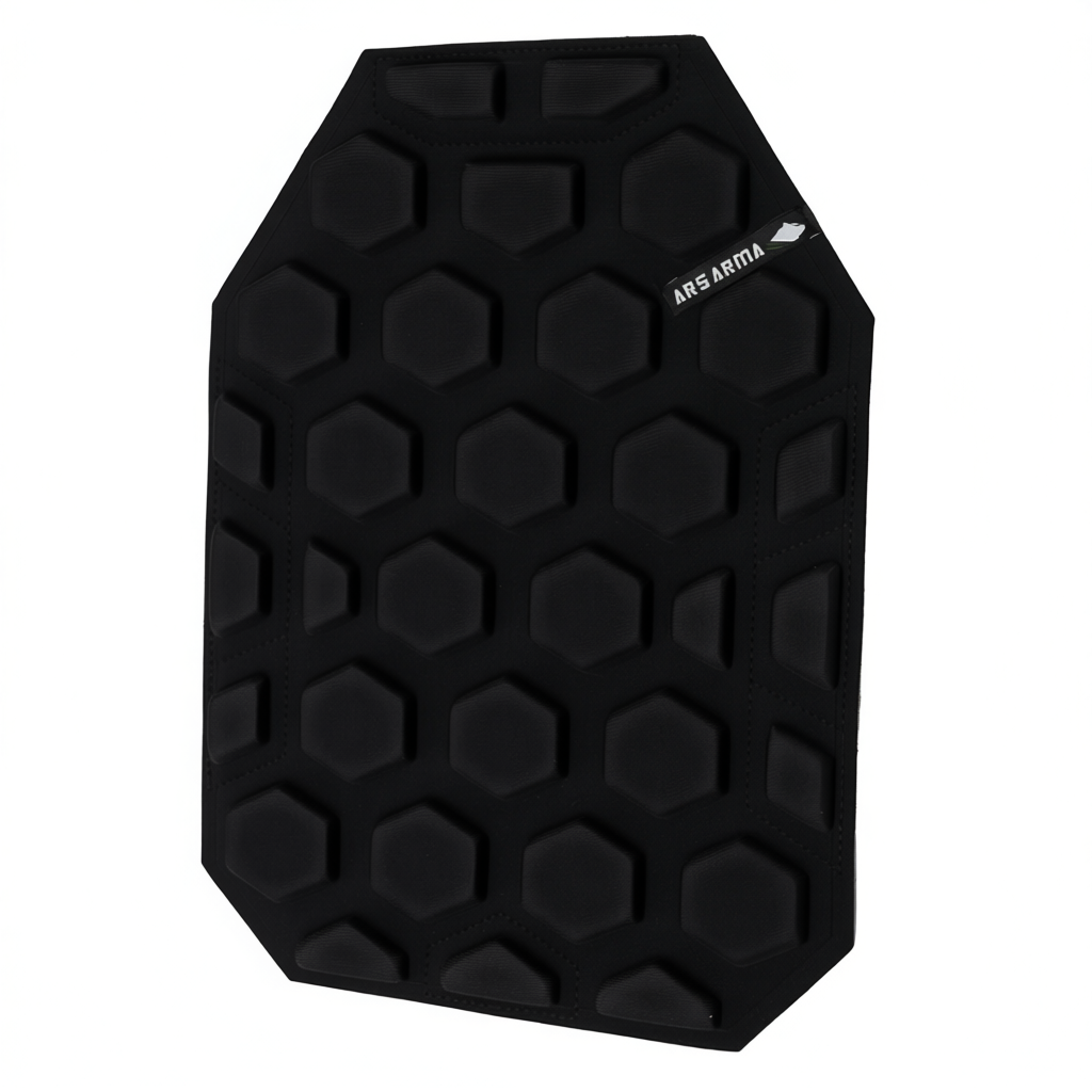 Разработан для вентиляции пространства между телом и жилетом, для снижения запреградного воздействия при попадании пули или осколка в бронежилет, повышает комфорт при использовании жилета.