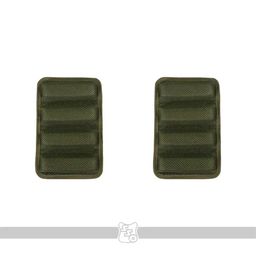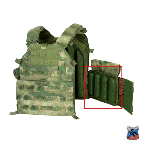 Комплект КАП для камербанда КАП (климатический амортизационный подпор) закреплённый на липучку, пришитую к подкладке плитника, либо бронежилета, обеспечивает защиту от запреградной травмы. Дополнительно КАП служит для отвода избыточного тепла от тела военнослужащего. • Изделие представляет собой пластину из ПНД (полиэтилен низкого давления) с элементами из виброгасящего материала, обшитых мягкой сеткой на поролоновой основе. • Крепление к чехлу для бронеэлементов происходит с помощью липучки. Жёсткая часть нашита на пластиковую основу КАП, мягкая должна быть нашита непосредственно на чехле. • Комплект состоит из двух штук (для левого и правого камербанда). Габариты КАП толщиной 13 мм: • Высота – 14 см. • Длина – 21,5 см. • Вес комплекта КАП ~ 120 г. Габариты КАП толщиной 23 мм: • Высота – 14 см. • Длина – 21,5 см. • Вес комплекта КАП ~ 140 г.