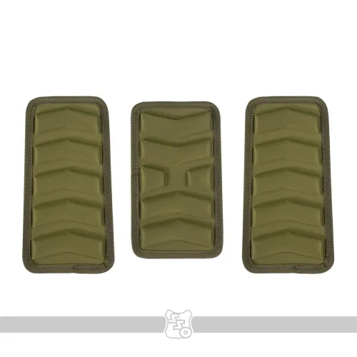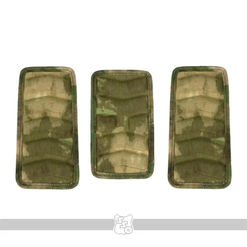 Комплект КАП X-FORM в пояс-основу ВОИН/Печенег Современные боевые пояса, они же варбелты, оснащаются карманами под арамидные или СВМПЭ пакеты. Для защиты от запреградной травмы при попадании осколка к подкладке пояса пришивается липучка для размещения на нём КАП (климатического амортизационного подпора). • Изделие представляет собой пластину из ПНД (полиэтилен низкого давления) с элементами из виброгасящего материала, термически скреплёнными с синтетической тканью верха. • Крепление к чехлу для бронеэлементов происходит с помощью липучки. Жёсткая часть нашита на пластиковую основу КАП, мягкая должна быть нашита непосредственно на чехле. • Комплект состоит из трёх элементов (два боковых и центрального). Габариты: • Высота центрального элемента – 11.8 см. • Длина центрального элемента – 20.2 см. • Максимальная высота боковых элементов – 11.6 см. • Длина каждого из боковых элементов – 22.7 см. • Вес комплекта КАП ~ 120 г.
