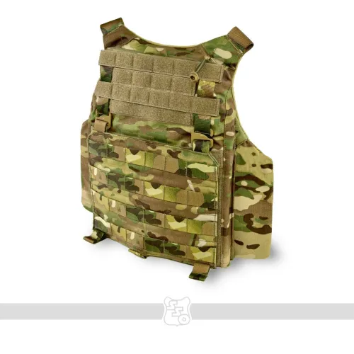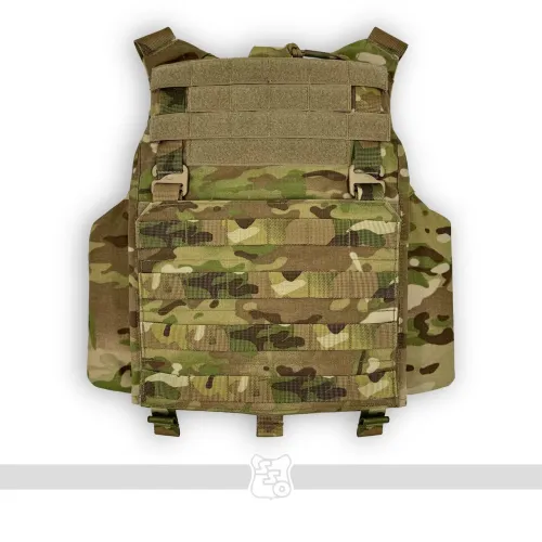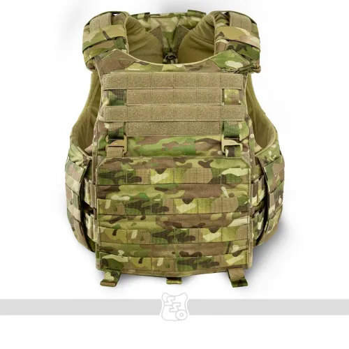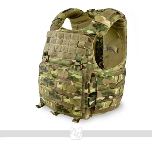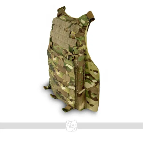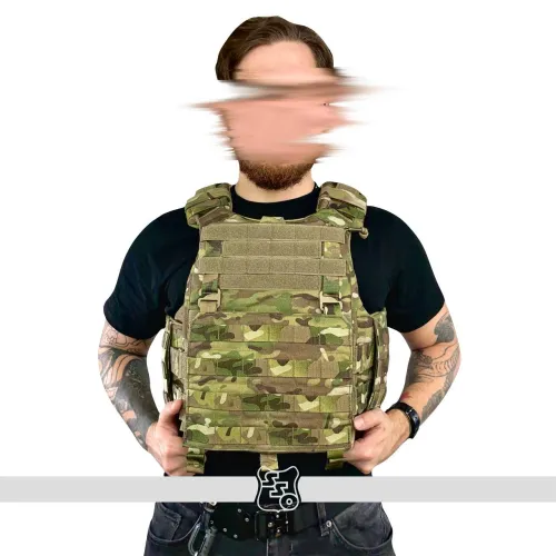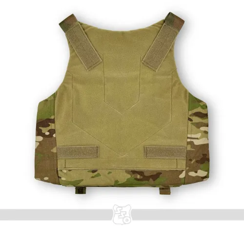 Корсетный бронежилет STRIKE AIR Он крепится к лямкам на велкро, а также имеет возможность установить туда фастекс на 40 мм , ROCS, TUBES или пряжку ЗУБР (Кобру) . Сам карман под плиту вмещает в себя большинство отечественных плит 2 и 3 размера по типу гранит, щелчок, а также иностранные по типу SAPI. Он вынесен относительно основного кармана под баллистическую защиту, тем самым выполняет роль как бы навесного плитника поверх противоосколочной жилетки. Таким образом, при работе с оружием, несмотря на увеличенную площадь защиты, движения не будут скованы. Также между карманом под баллистику и плиту есть усиленный карман для входа жесткой части корсета. В области груди присутствуем Molle интерфейс для размещения административных подсумков. Передний флэп крепится с помощью велкро и съемных G-hook (джи-хуков), имеет 8 ячеек Molle для размещения доп. имущества. Под передним флэпом есть потайной велкро-карман для модулей по типу сумки гром, защиты паха или других изделий. Задний плейтбег сконструирован таким образом, чтобы также вмещать в себя большинство плит отечественного и иностранного производства, однако не имеет увеличенной противоосколочной защиты, поскольку дополнительная баллистическая защита происходит за счет возможности установки баллистики в сам корсет. В нижней части плейтбега также расположен потайной карман для возможности размещения доп. модулей по типу защиты тыла и других. Также в нижней части есть техническое отверстие для возможности регулировки корсета по объему за счет эластичного Shock Cord (шок корда) и специальной пластиковой пряжки со стопором. В верхней части плейта имеется ремень с двумя полукольцами на 40мм, который крепится к лямкам корсета для правильно позиционирования плиты и его хода относительно корсета. На обратной части заднего плейта имеется система крепления чехла к корсету, позволяющая устанавливать плиту выше или ниже в зависимости от особенностей оператора. Также внутри есть петли для крепления корсета с помощью эластичного корда. Особое внимание как всегда мы уделили разнесению лямок для комфортной работы оператора, поскольку при неправильном угле у сотрудника может начаться головная боль, тошнота и ему будет сложнее выполнять поставленные задачи. Внутри лямок присутствует специальная 3D сетка, а также новая вставка из неопрена, которая сохраняет свои свойства и восстанавливается несмотря на длительность использования и степень нагрузки на нее. Также лямки выполнены достаточной ширины, чтобы не давить на трапецию и правильно распределять вес жилета. С внутренней стороны переднего плейтбега имеется мягкая контактная лента для размещения стандартных кап. Корсет будет производиться в трех размерах: S,M,L. Основной плюс данного корсета - возможность установки баллистики в него через специальные карманы, причем баллистика будет в двух вариантах - укороченном и увеличенном с заходом до конца лямки для повышения защиты. Камербандная часть корсета имеет возможность установки упоров системы СТКСС через адаптеры. На ней присутствует три ряда Molle для размещения БК. Внутренняя часть корсета производится из велкро-полотна для размещения специальных кап. «Второе дыхание» обеспечивается за счёт эластичного камербанда из специально разработанной для нас двойной ленты со страховкой. Таким образом, обеспечивае