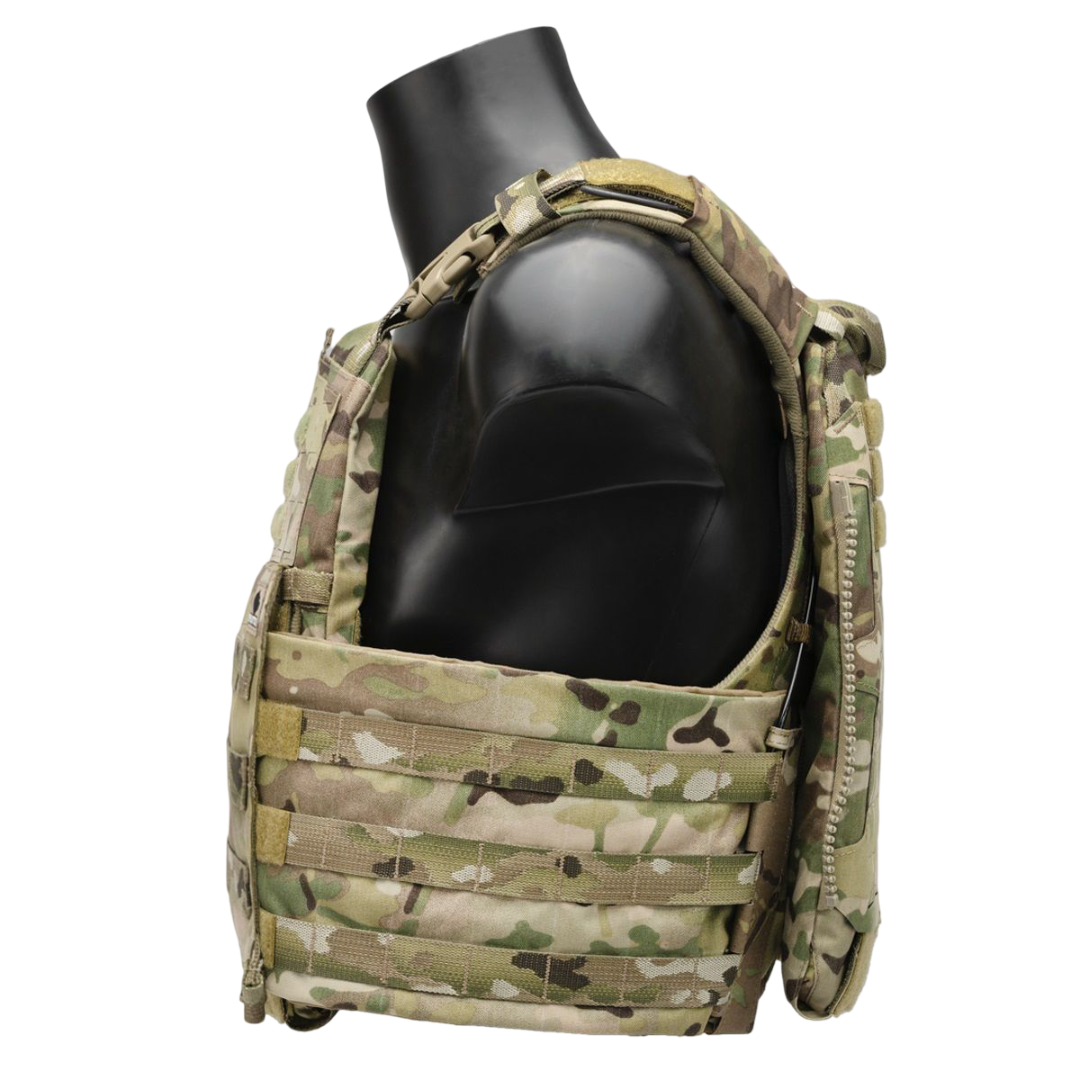 Сплошная баллистическая защита - баллистика камербанда жилета полностью перекрывает боковую проекцию, пакет заходит под заднюю панель устраняя просвет между бронеэлементами.