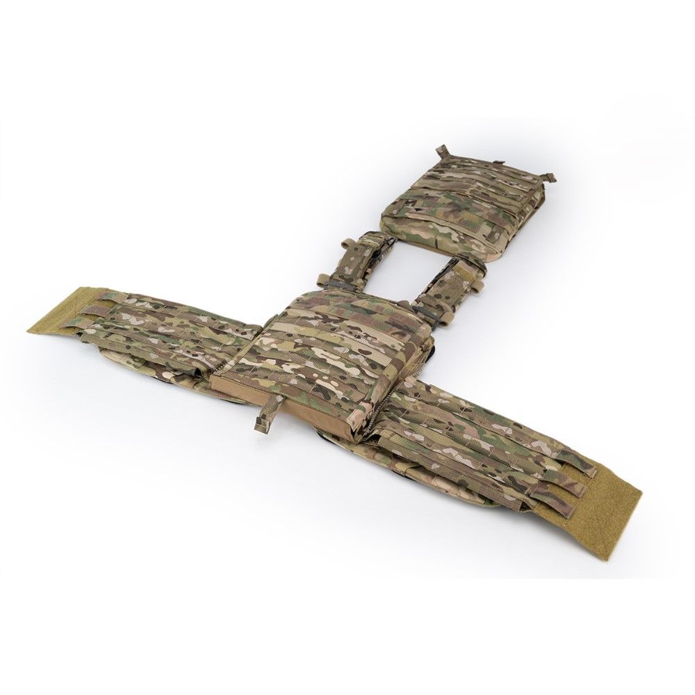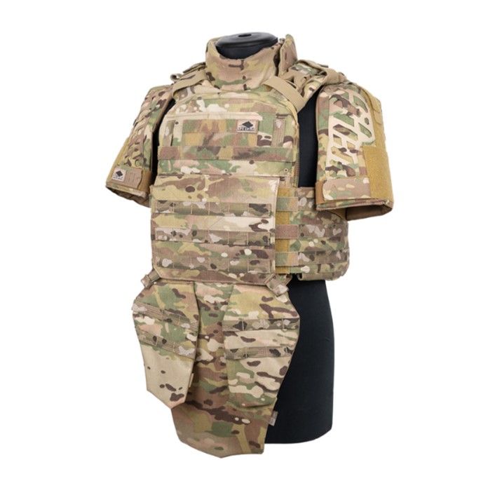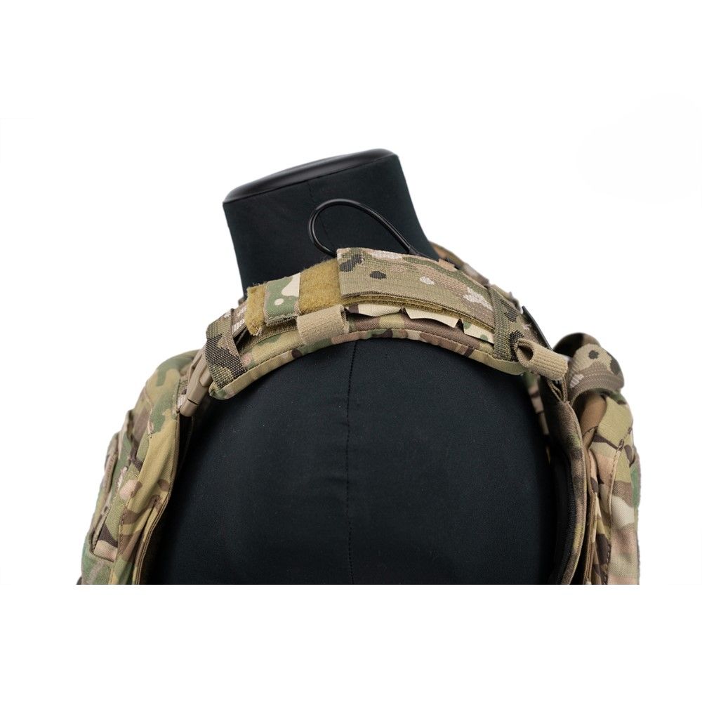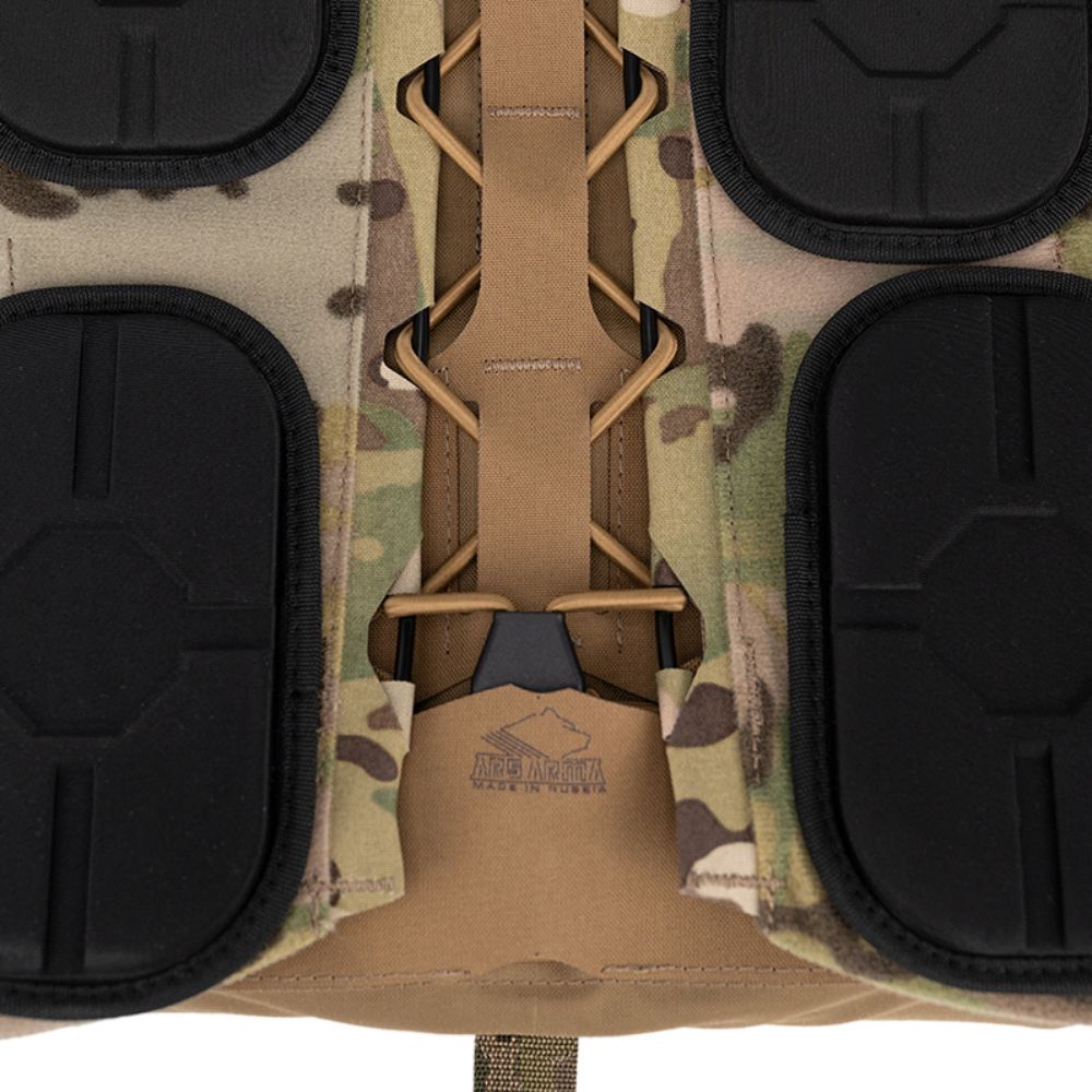 Этот модульный бронежилет имеет в своей основе полимерный корсет, который буквально облегает корпус тела, что позволяет избегать люфта бронежилета при активном движении, а также способствует более равномерному распределению веса.