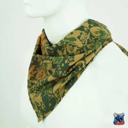 Косынка БАНДАНА Бандана происходит с Индийского субконтинета откуда она попала сначала в Испанию, где её носили вакерос, а потом в Америку, где ею пользовались уже ковбои. И вакерос и ковбой на русский язык можно перевести как пастух или скотовод. Это был очень практичный головной убор, который мог быть быстро надет на лицо, чтобы закрыть нос и рот от клубов пыли, поднимаемых скотом во время перегона. В настоящее время в отдельных случаях они применяются в экипировке воинских частей специального назначения военной разведки Вооружённых сил Российской Федерации. Специально для них мы производим её во всех распространённых в России камуфляжах. А для фанатов старой классики и тех кто хочет использовать её в качестве стильного аксессуара, доступно большое кол-во уже забытых или экспериментальных расцветок. • Многофункциональный головной убор, который можно использовать как головной убор, мужской шарф и маску для лица. • Изделие представляет из себя треугольный кусок ткани, края которого обработаны окантовочным швом. • Повязывается вокруг головы, шеи или лица. • Защищает от ветра и солнца. • Защищает дыхательные пути от попадания мелких частиц (пыль, песок, пепел). • Изготавливается из дышащей ткани. Габариты: • Размеры – 105х70х70 см. • Вес косынки пошитого из ткани Панацея в расцветке СС-Лето ~ 40 г.