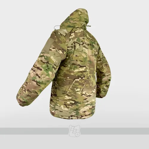Куртка DELTA разработана совместно с сотрудниками спецподразделений. Мы используем при производстве высокотехнологичные материалы, что придает изделию долговечность и удобство. Ткань верха 88% нейлон 12% спандекс гидрофильная мембрана 4-way stretch с паропроницаемостью и водяным столбом 15000мм. Утеплитель два слоя по 100 грамм Primaloft Silver. Нейлоновоя пуходержащая подкладка. Американские молнии IDEAL. Куртка прямого покроя, слегка занижена по задней половине и укорочена по передней. Куртка закрывается на защитную высокопрочную двухзамковую молнию с ветрозащитной двойной планкой с подгибом. Куртка имеет 9 карманов: Два в области груди на месте, позволяющим пользоваться ими при ношении бронежилета; Два кармана в районе запястья; Два кармана на рукавах; Один потайной карман под ветрозащитной планкой; Два внутренних кармана на эластичной нейлоновой сетке. По низу куртки имеются две утяжки для регулирования объема. Куртка имеет съемный анатомичный капюшон, утягивающийся в нескольких проекциях, а фурнитура для утяжки прячется в специальный карман. Капюшон имеет утеплитель 100 грамм и закрыт с внутренней стороны ветрозащитной нейлоновой пуходержащей подкладкой. Область воротника выполнена из специальной мягкой ткани Tricot Brush. Куртка имеет довольно развитую вентиляцию под рукавами на двухзамковой молнии, закрытой от продувания ветрозащитной планкой с двумя слоями утеплителя Primaloft Silver по 60 грамм. Куртка имеет ветрозащитную юбку с нескользящим латексным покрытием, чтобы она не задиралась при активном использовании и специальные карманы, куда можно спрятать хвосты, если вы не планируете ее использовать. С обратной стороны юбки имеются итальянские кнопки PRYM, чтобы закреплять юбку на зимние брюки DELTA для большей защиты от продувания. Плечи и локти куртки усилены тканью CORDURA 500 den для надежной защиты от протирания при ношении бронежилета и переползаниях на локтях. На рукавах пришито велкрополотно с обеих сторон для размещения шевронов.