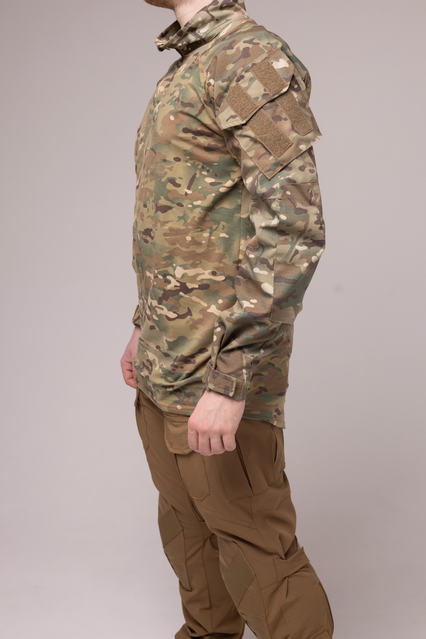 Данная боевая рубашка разработана специально для экстремально жарких условий. Она выполнена из лёгкой и тонкой сорочечной ткани, обеспечивающей лучшую вентиляцию, чем классические боевые рубашки Paladin из рип-стопа. Плотность ткани – 160 г/м², что делает её максимально комфортной для носки в южных регионах России, Африке и других особо жарких климатах. Эта ультралёгкая рубашка станет отличным выбором для тактических задач в экстремально жарком климате, обеспечивая высокий уровень комфорта, вентиляции и функциональности. Дополнительно в рубашку добавлены сетчатые вставки в карманах, что значительно улучшает воздухообмен и делает модель ещё более подходящей для жаркого климата.Особенности: Манжеты на липучке – регулируемый обхват рукава. Плечевой карман на липучке – удобное место для хранения документов и мелочей. Мягкий воротник – предотвращает натирание, обеспечивая комфорт в жару. Система вентиляционных молний – улучшает циркуляцию воздуха. Эластичная ткань торса – максимальная свобода движений при активных действиях. Усиленные локти из Cordura® – защита от истирания и механических повреждений. Съемные налокотники (продаются отдельно) – возможность установки уплотнителей. Материалы: Основная ткань: 65% полиэстер, 35% вискоза – ультралегкий, дышащий материал. Плотность ткани: 160 г/м² – оптимальный баланс между прочностью и вентиляцией. Сетчатые вставки в карманах – дополнительная циркуляция воздуха. Доступные расцветки: Однотонные цвета: Олива, Черный, Койот. Камуфляжи: Multicam, Ranger Green. Доступные размеры: 46-48, 48-50, 50-52, 52-54, 54-56, 56-58, 58-60, 60-62, 62-64, 64-66, 66-68, 68-70, 70-72, 72-74, 74-76 Доступные ростовки: 166-172 см, 174-178 см, 182-188 см, 192-196 см