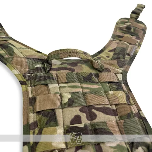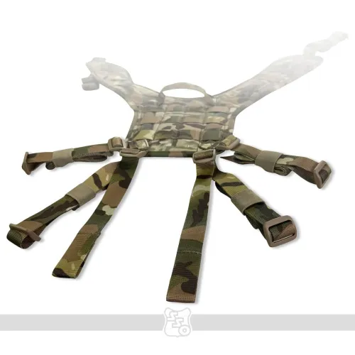 Лямки плечевые ЛП МЕДУЗА Облегчённые плечевые лямки для ременно-плечевой системы, предназначенные для ношения поверх плитника, либо полноценного бронежилета. Несмотря на свой малый вес и минимизированную конструкцию, они рассчитаны на использовании с боевым поясом, переносящим короба и ленты от ПКМ/ПКП или увеличенный б/к стрелка. • Изделие состоит из правой и левой лямки, от которых вниз уходят «хвосты» для крепления к снаряжению, а также из спинной платформы, от которой идёт ещё четыре «хвоста». • Шесть точек крепления (две спереди и четыре сзади) к тактическим поясам, либо подсумкам. • Лямки можно закрепить как к специальным точкам крепления на поясе, так и просто продев их в ячейки Molle или пропустив через них ремень. • Левая и правая лямки, а также спинная платформа представляют из себя сэндвич. Внешняя ткань Cordura, либо Кордон (зависит от расцветки), далее идёт изолон толщиной 2 мм и подложка из жёсткой сетки. • Лямки имеют эргономичную форму. Ширина лямок в самой узкой части – 7,5 см, в самой широкой – 9,5 см. • Для крепления дополнительного снаряжения к каждой лямке пришито по 4 ременных ленты. Верхние две предназначены для крепления карабинов, тангент или PTT кнопок. Нижние, шириной в 2 ячейки Molle, для крепления сумок под радиостанции или ИПП. • Спинная платформа состоит из трёх горизонтальных лент, разделённых равным промежутком, по 4 ячейки Molle на каждой. • В верхней части спинной платформы пришита ручка для переноски. Она предусматривает, что при необходимости эвакуации раненого бойца с поля боя к ней будет закреплён карабин от эвакуационной стропы. • Лямки и спинная платформа по краям окантованы лентой. • Универсальный размер. Регулировка длины лямок позволяет настроить их под любой рост оператора (от 150 до 210 см). • В точках крепления «хвостов» из ременной ленты к лямкам, либо спинной платформе, установлены пластиковые пряжки-крылья. Через них продевается ременная лента для её фиксации, а также они позволяют быстро отрегулировать лямки по росту на себе. • Вес плечевых лямок из ткани плотностью 500D ~ 340 г.