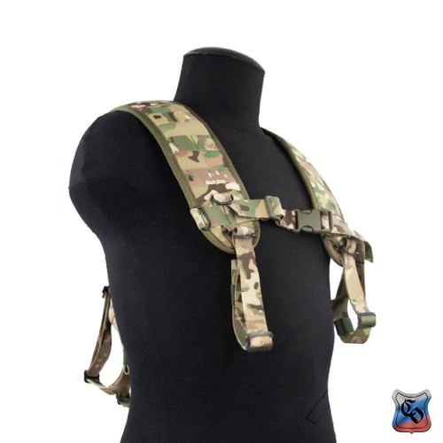 Лямки плечевые ЛП PLCE MOLLE №2 Плечевые лямки для ременно-плечевой системы, предназначенные для ношения поверх облегчённого плитника, либо полноценного бронежилета. Благодаря своим конструктивным особенностям, данная модель предусматривает их ношение параллельно с рюкзаком. • Изделие состоит из правой и левой лямки, от которых вниз уходят «хвосты» для крепления к снаряжению, а также из спинной платформы от которой идёт ещё четыре «хвоста». • Шесть точек крепления (две спереди и четыре сзади) к тактическим поясам, либо подсумкам. • Лямки можно закрепить как к специальным точкам крепления на поясе, так и просто продев их в ячейки Molle или пропустив через них ремень. • Левая и правая лямки представляют из себя сэндвич. Внешняя ткань Cordura, либо Кордон (зависит от расцветки), далее идёт изолон толщиной 2 мм и подложка из жёсткой сетки. Ширина лямок – 9 см. Для крепления сумок под радиостанции или ИПП, к каждой из них пришито по семь ременных лент шириной в 2 ячейки Molle. Над обеими нижними ременными лентами с ячейками Molle есть металлическая фурнитура для крепления карабинов, чтобы при необходимости разместить на них перчатки или страховочный тренчик. • Между собой левая и правая лямка соединяются съёмной грудной стяжкой. Она застёгивается на фастекс и регулируется по ширине с помощью двухщелёвок. Грудная стяжка выравнивает нагрузку по всей ширине лямки, позволяет лямкам не разъезжаться. • Спинная платформа состоит из трёх горизонтальных лент, разделённых равным промежутком, по 5 ячеек Molle на каждой. Ременные ленты нашиты поверх жёсткой сетки. • В верхней части спинной платформы пришита ручка для переноски. Она предусматривает, что при необходимости эвакуации раненого бойца с поля боя к ней будет закреплён карабин от эвакуационной стропы. • Лямки и спинная платформа по краям окантованы лентой. • Рюкзаки, продовольственные сумки и чехлы для гидросистем с креплением на Molle крепятся напрямую к спинной платформе. Лямки классических рюкзаков фиксируются к лямкам в районе плечей на застёжку состоящую из двух ременных лент с нашитыми на них мягкой и жёсткой частью липы соответственно. Фиксация лямок рюкзака позволяет использовать только грудную стяжку от плечевых лямок, не застёгивая поверх неё грудную стяжку от рюкзака. • Универсальный размер. Регулировка длины лямок позволяет настроить их под любой рост оператора (от 150 до 210 см). • В точках крепления «хвостов» из ременной ленты к лямкам, либо спинной платформе, установлены металлические пряжки-крылья. Через них продевается ременная лента для её фиксации, а также они позволяют быстро отрегулировать лямки по росту на себе. • Вес плечевых лямок из ткани плотностью 500D ~ 500 г.