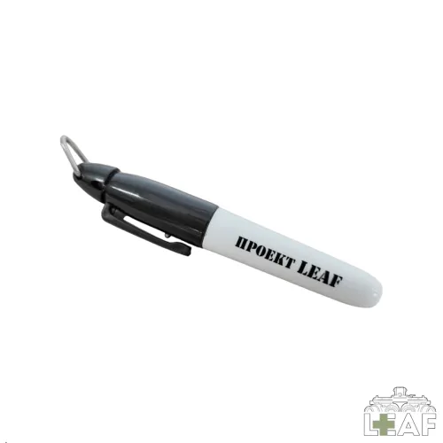 Маркер Проект LEAF Удобный и компактный маркер, который подходит для нанесения надписей на почти любые поверхности: бумага, дерево, ткань, кожа, металл, пластик, стекло и т. д. • Отлично подойдёт для комплектации небольшой EDC-сумки или медицинского подсумка. • На колпачке есть металлическое кольцо, за которое маркер можно привязать, чтобы не потерялся. • Для закрепления на кармане можно использовать клипсу. Габариты: Длина – 9 см. Вес – 5 г. • Регистрационный номер: RU.32468.04ЛЕГО.ОО7.12282 (Система добровольной сертификации «ЛЕГИОН С»)
