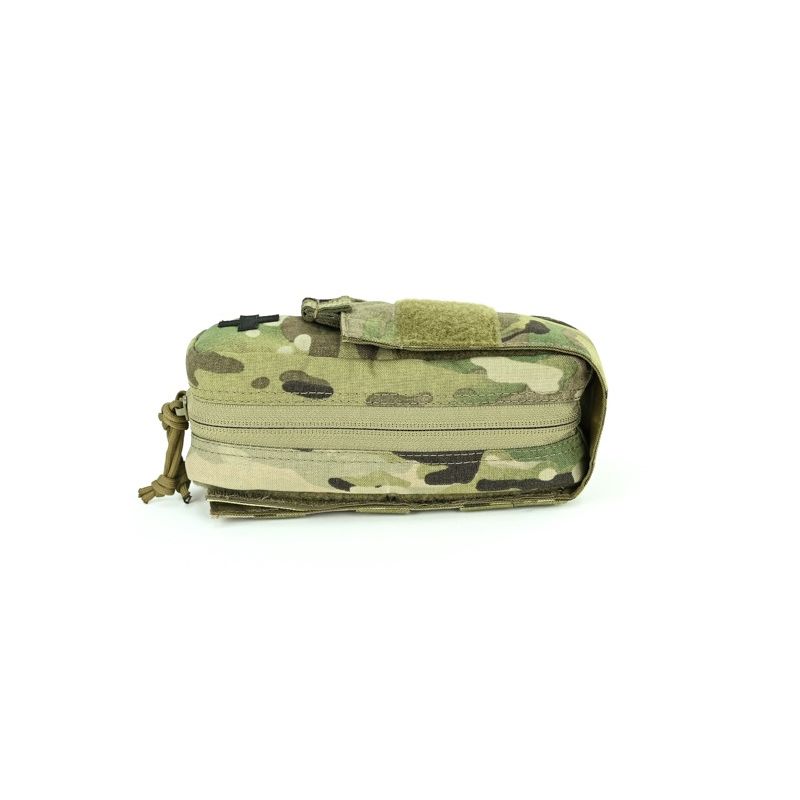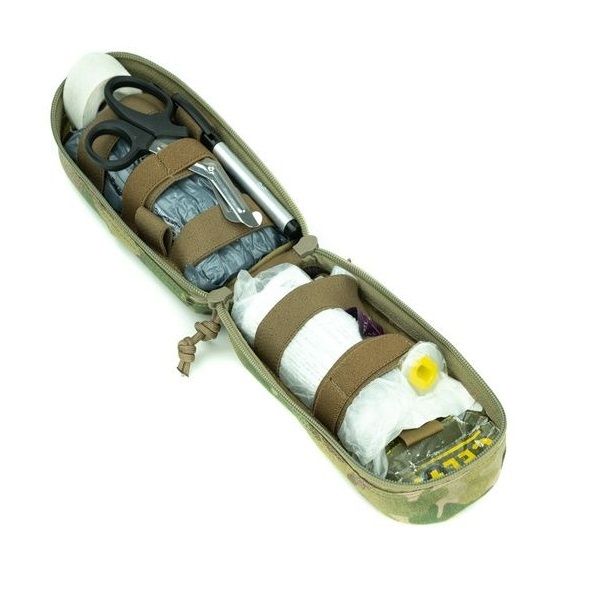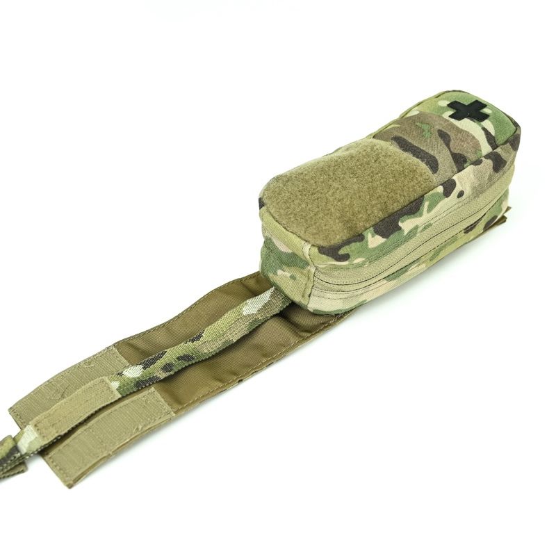 Узкая отрывная аптека, имеет всего 2 MOLLE ячейки в ширину для экономии места, при этом обладает весьма большим внутренним объемом.
