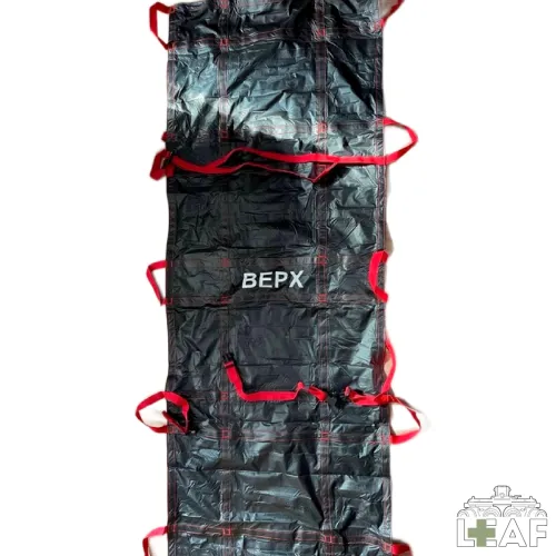 Носилки LEAFVAC Тканевые ультралёгкие носилки то Проекта LEAF. • Изготовлены из армированного нейлона. • Выдерживают переноску любого бойца в снаряжении. • Прошиты стропами по всему полю носилок, 8 боковых ручек и 2 спереди и сзади, стяжки крепления рук и ног. • Перевернув носилки, можно показывать вертолёту место посадки. Габариты: • Длина – 190 см. • Ширина – 70 см. • Вес – 528 г.
