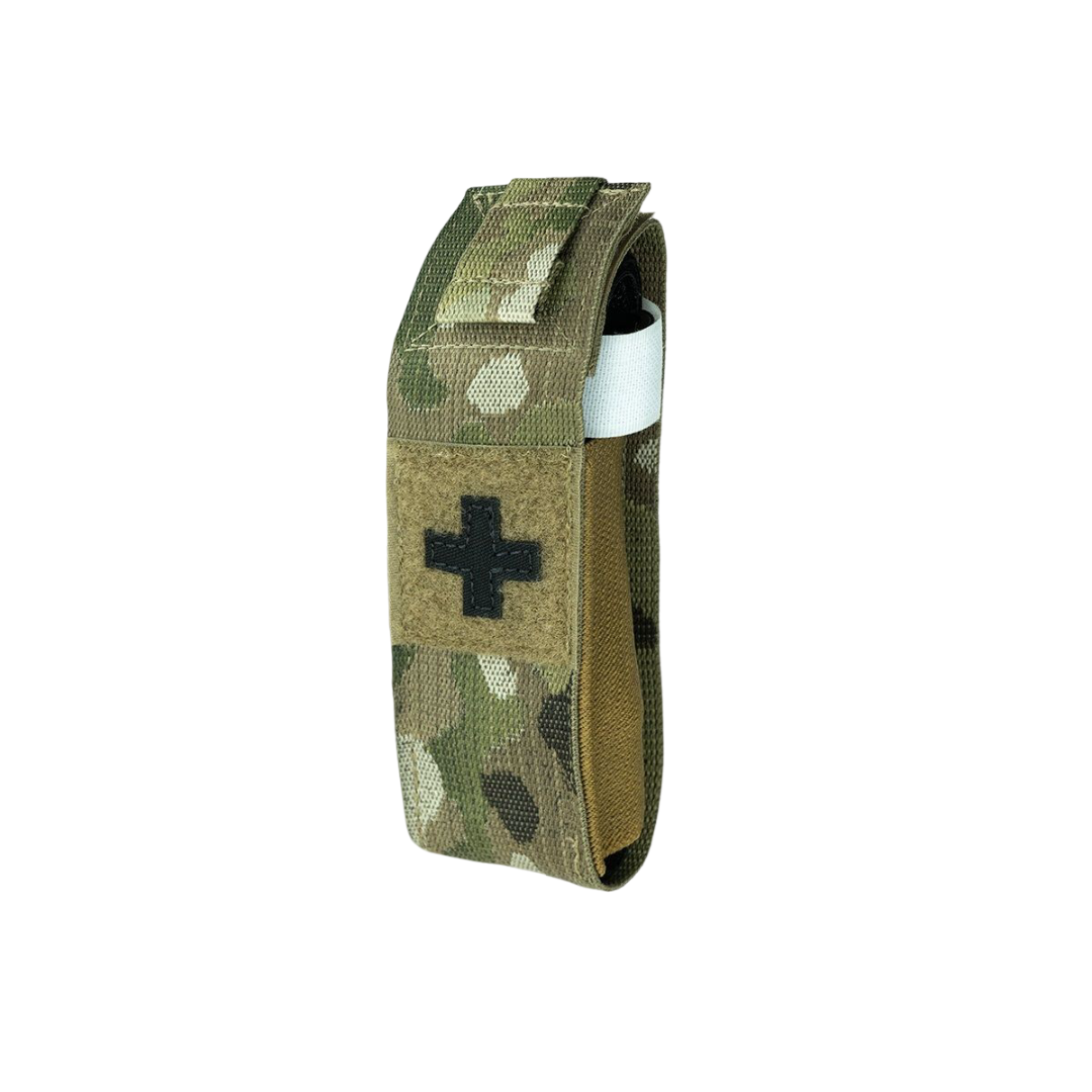 На внешней стороне подсумка находятся велкро панель и знак медицины для быстрого нахождения подсумка в экстренной ситуации.