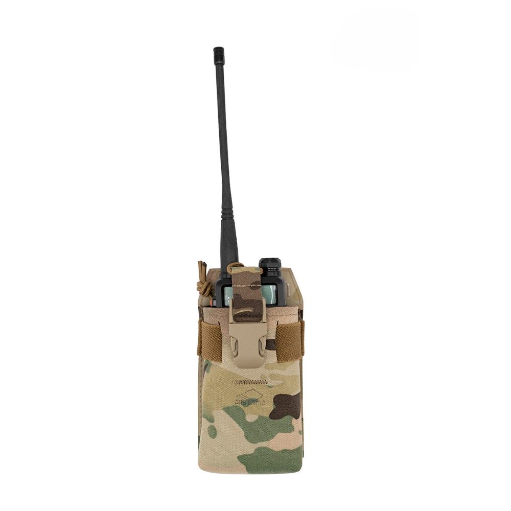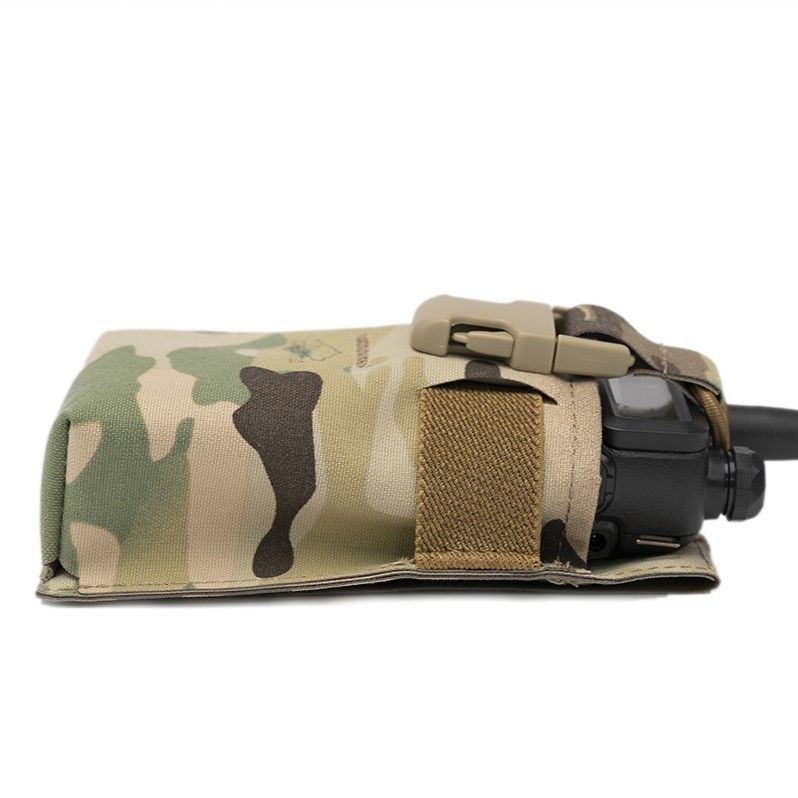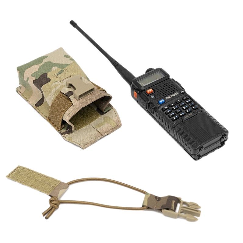 Подходит для раций средних габаритов, например, Kenwood, Baofeng, в том числе с увеличенным АКБ. Для удержания рации используется фастекс и эластичный корд. Доступна регулировка габаритов по высоте.