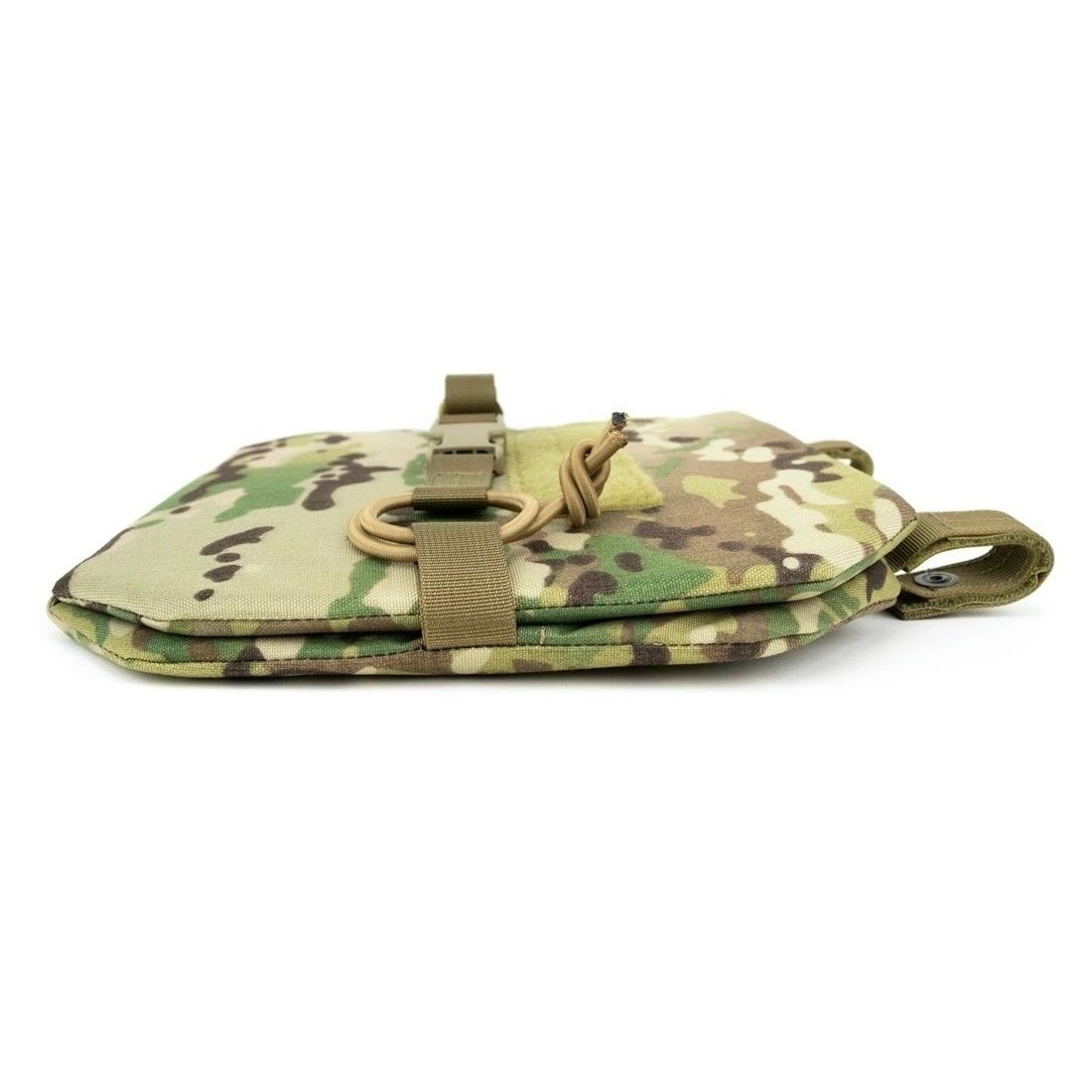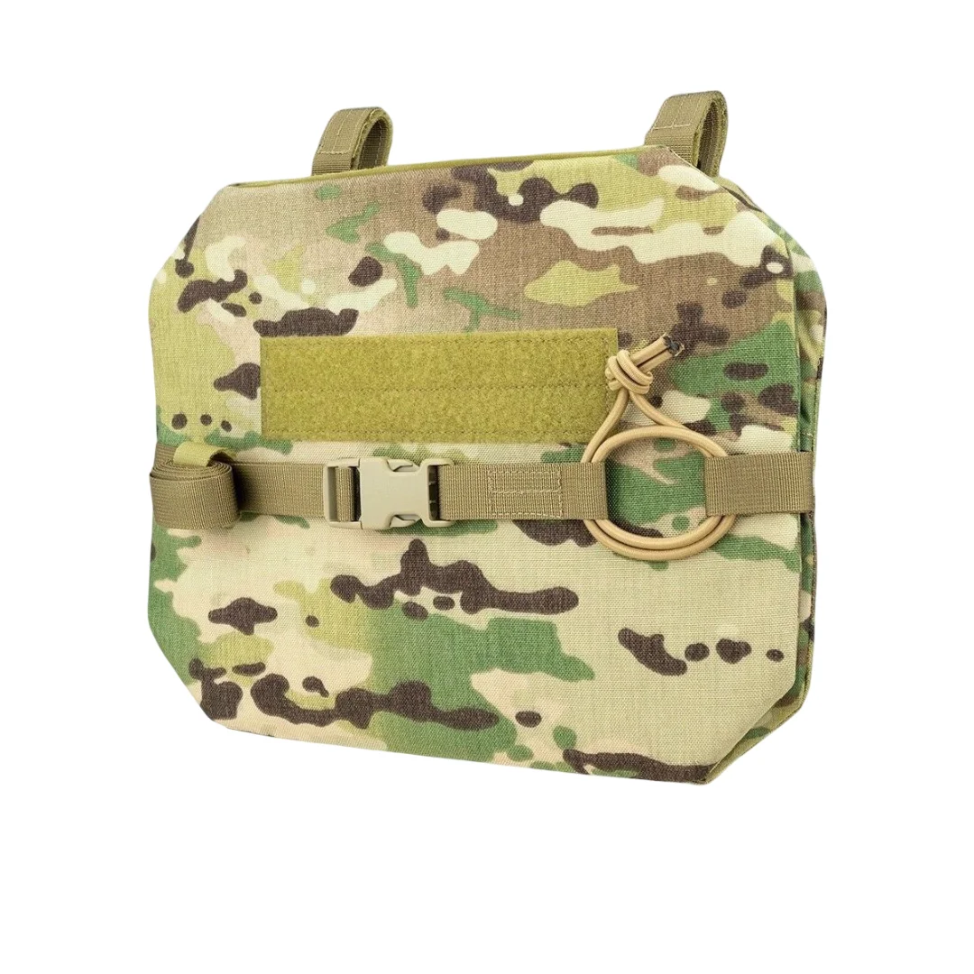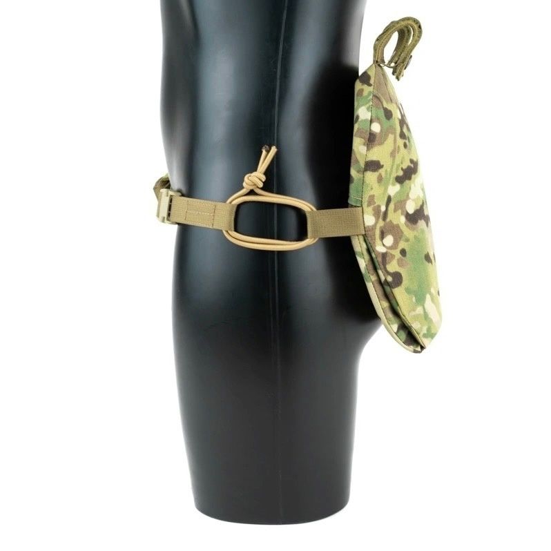 Сидушка может быть закреплена тремя способами, на MOLLE платформу бронежилета или пояса, а также как классическая сидушка с помощью поясной стропы, в этом случае ее можно будет повернуть вперед и использовать как малый коврик для засады, либо подложить под спину для короткого отдыха.