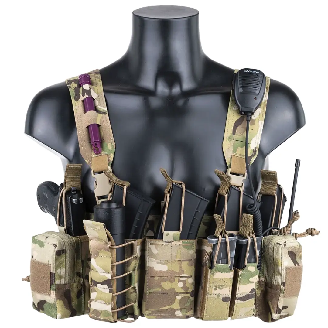 Лямки отсоединяются, в этом случае нагрудник можно разместить на бронежилете при использовании комплекта интеграции.