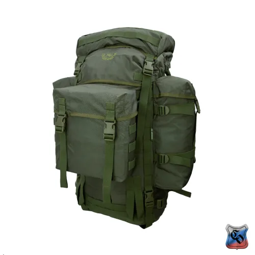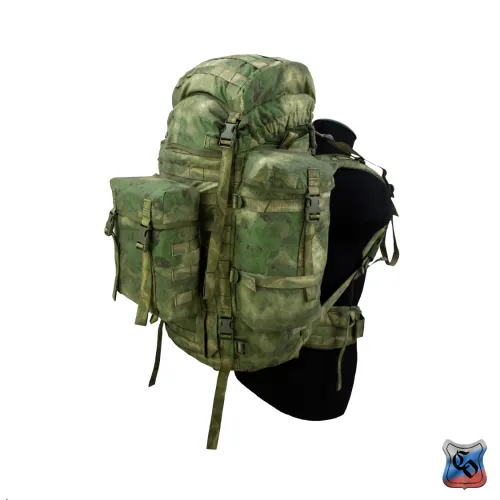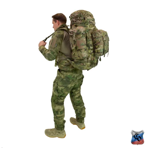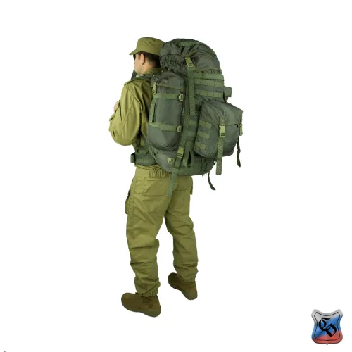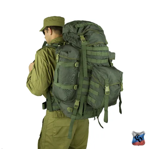 Рюкзак объёмом 60 л. Рюкзак стал дальнейшим развитием семейства рейдовых рюкзаков «Атака» в направлении большей универсальности и возможности использования его в качестве рюкзака для подразделений автономно действующих в условиях высокогорья. Рюкзак рассчитан на ношение в нём имущества входящего в третий эшелон (линию) индивидуальной экипировки военнослужащего. Как правило, это дополнительные боеприпасы, оборудование для лагерной стоянки, тёплая одежда, сменный комплект белья, средства личной гигиены, горное снаряжение, инженерное имущество, запас продовольствия и воды, приборы наблюдения и разведки, дополнительные средства связи. Имущество размещается в основном отделении, трёх внешних карманах, двух карманах объёмного верхнего клапана и на внешних узлах крепления. Основное отделение с двумя входами. Верхний вход утягивается продержкой из шнура со стопором и закрывается мягким тубусом, со своей продержкой. Дополнительно верхний вход стягивается переброшенной через него ременной лентой с замком - «фастексом» - такой ремень позволяет сохранять быстрый доступ к содержимому рюкзака, и его фиксацию при не затянутых продержках горловины и тубуса. Тубус закрывается съёмным клапаном с четырьмя «фастексами» регулируемыми по высоте. Клапан комплектуется двумя съёмными ремнями шириной 50 мм с «фастексом», для его использования в качестве поясной сумки. Внутренние карманы клапана закрываются на витые молнии. Помимо имущества внутри клапана также переносится закреплённый там чехол рюкзака, который служит для защиты рюкзака от влаги и маскировки на растительных зелёных фонах. При использовании чехол крепится ремнём к пряжке – пятистенке снаружи задней стенки клапана. Нижний вход закрывается горизонтальной витой молнией прикрытой планкой, на уровне которой с изнанки внешней стенки пришита откидная перегородка, удерживаемая двумя пряжками – шестистенками. Над перегородкой пришит второй мягкий тубус со стяжкой – продержкой и стопором. Система двух тубусов полностью изолирует содержимое основного отделения, исключая перемешивание разных по размеру и назначению предметов. Молния дополнительно страхуется «фастексами» с регулировочными ремнями, которые могут использоваться для крепления к рюкзаку дополнительного снаряжения. Для крепления к рюкзаку модулей системы PALS (MOLLE) к внешним стенкам основной ёмкости пришито восемь горизонтальных ременных лент с шестьюдесятью шестью ячейками шириной 35- 40 мм. Ещё три ремня с двадцатью четырьмя ячейками пришиты к верхней части клапана. Для крепления дополнительного имущества (свёрнутый теплоизоляционный коврик или палатка, РПГ, РШГ) рюкзак комплектуется восьмью съёмными петлями длиной 720 мм. Четыре петли с регулировочными пряжками – шестистенками и четыре с «фастексами». Петли могут крепиться к двум ременным лентам шириной 50 мм пришитых на дне строчками образующими шестнадцать ячеек шириной 35 мм. Для крепления горного снаряжения (ледорубы, трекинговые и лыжные палки), над нижним входом в рюкзак пришиты две специальные П – образные петли из ременной ленты. Верх палок или ледоруба крепится съёмными петлями, продетыми в вертикальные ременные ленты с ячейками шириной 35 мм. Карман на внешней стенке основного отделения цельнокроеный съёмный, с мягким тубусом с продержкой и о