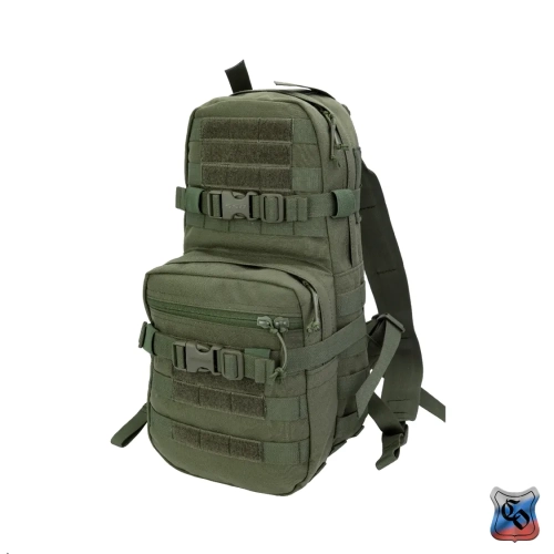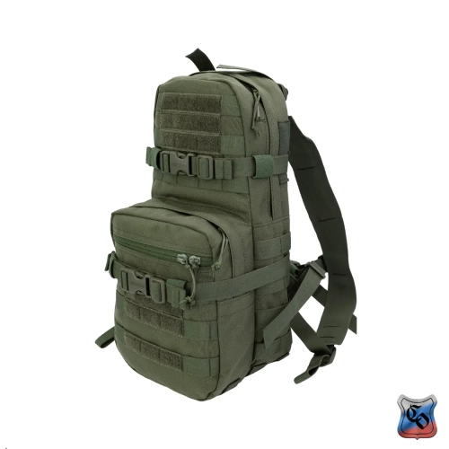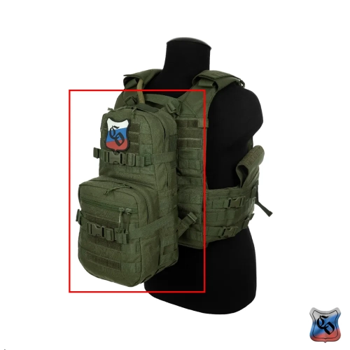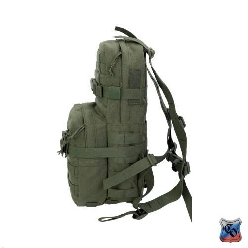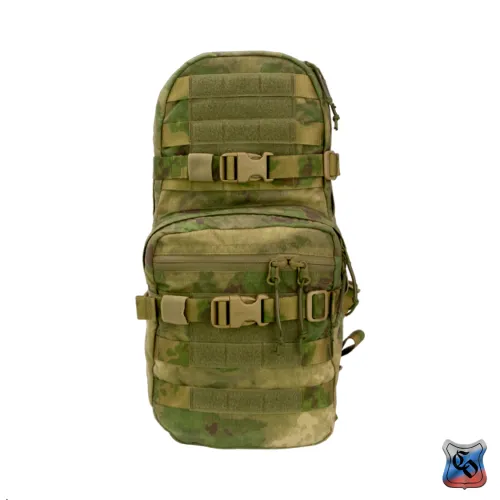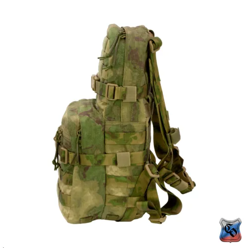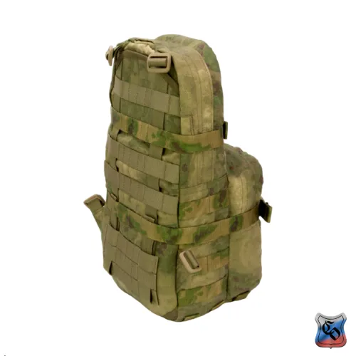 Рюкзак MAP MOLLE. Рюкзак для использования с чехлом для ношения бронепанелей • Предназначен для штурмовых действий в городской застройке. • Общий объём рюкзака – 12 литров. • Задняя спинка обшита ремнями системы Molle для крепления рюкзака на бронежилете, плитнике или разгрузочном жилете. • Рюкзак комплектуется лямками, для ношения его отдельно от снаряжения. • Габариты основного отделения: высота 42 см, длина 20 см, ширина 9 см. Объём 9 литров. Застёгивается на молнию. • Основное отделение для радиостанции типа Р-187П1 Азарт, двух магазинов АК и трёхлитровой питьевой системы. • Для фиксации питьевой системы есть отдельный карман из сетки. Шланг от питьевой системы, как и провод от радиостанции выводится через одно из трёх отверстий, прикрытых резинкой (два по бокам и одно сверху). Вверху основного отсека они крепятся на шлёвки из липы. Для фиксации радиостанции или магазинов по бокам основного отсека нашита широкая плотная резинка. • Радиостанция или магазины укладываются в один из двух внутренних боковых карманов из широкой и плотной резинки. • Спина рюкзака состоит из двух слоёв ткани формируя карман для размещения штурмового инструмента, например кусачек или кувалды. Закрывается карман на широкую липучку. • Габариты внешнего кармана: высотой 25 см длина 20 см, ширина 7 см. Объём 3 литра. Застёгивается на молнию. • Внешний карман оборудован двумя отделениями – внутреннее из сетки и на внешней стенке с застёжкой – молнией. • По бокам, на дне и на внешних стенках рюкзак обшит Molle ячейками для крепления дополнительного снаряжения. • Для патчей и шевронов, на основном отделении и внешнем кармане поверх строп нашита липучка. • Для регулировки по объёму и надёжной фиксации предметов внутри рюкзака есть 2 горизонтальные стяжки с фастексами. • Шесть шлёвок на дне рюкзака шириной 2,5 см и длиной 5 см для крепления дополнительного имущества (стянутого ременными петлями дождевика, куртки. спальника). • Дно с дренажными отверстиями с металлическими люверсами. • Вес рюкзака из ткани плотностью 1000D ~ 800 г.