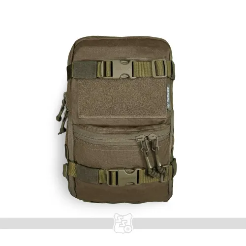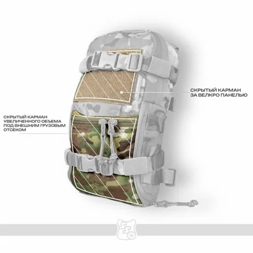 Рюкзак MINIMAP MOLLE. Рюкзак для использования с чехлом для ношения бронепанелей 4,5 л • Предназначен для штурмовых действий в городской застройке. • Общий объём рюкзака – 4,5 литра. • Задняя спинка обшита ремнями системы Molle для крепления рюкзака на бронежилете, плитнике или разгрузочном жилете. • Рюкзак комплектуется лямками, для ношения его отдельно от снаряжения. • Рюкзак состоит из основного отделения и двух накладных карманов на внешней стенке. • Основное отделение разделено съёмной перегородкой на две части. Данное разделение нужно для возможности переноски в рюкзаке питьевой системы объёмом до полутора литров. Также узкий кармашек, образуемый разделением основного отделения можно использовать, чтобы убирать в него документы, карты, пакет страйкбольных шаров или пайки аналогичные MRE. • К верхней стенке, поверх узкого кармашка нашиты три петли из шнура для крепления гидросистемы. • Шланг от питьевой системы, гибкая антенна от радиостанции, а также кабель от PTT кнопки или тангенты выводятся через одно из двух отверстий в верхней части рюкзака. Оба отверстия закрыты эластичной лентой. • Изнутри стенки основного отделения и одна из сторон съёмной перегородки, обшиты мягкой частью липучки. Это позволяет устанавливать кобуру КПУ МАКС или аналогичные модули от сторонних производителей. • Доступ в основное отделение осуществляется с помощью молнии, которая расстёгивается практически до середины, и позволяет откинуть внешнюю стенку, чтобы получить доступ ко всему содержимому. Дополнительно в нижней части рюкзака с обоих боков есть молнии для быстрого доступа к содержимому нижней части основного отделения. Все замки молний с подвесами из шнуров в термоусадочных трубках. • В верхней части передней стенки рюкзака располагается плоский накладной карман. У кармана правый боковой вход. Карман застёгивается на липучку. Поверх кармана нашита липучка для крепления шевронов и неймтапов. Внутри кармана штатно располагается вкладыш под мультитул. • Вкладыш застёгивается на молнию. Размер вкладыша 14 на 8,5 см. С одного из боков на нём нашита петля для быстрого извлечения из кармана. • В нижней части передней стенки рюкзака располагается объёмный накладной карман на молнии. За ним плоский карман застёгивающийся на липучку. • На каждой из боковых стенок нашито по три ременных ленты шириной в 2 ячейки Molle. На дне рюкзака нашита одна ременная лента длинной в 4 ячейки Molle. Габариты основного отделения: • Высота – 30 см. • Длина – 19 см. • Ширина – 10 см. Габариты съёмной перегородки в основном отделении: • Высота – 22 см. • Длина съёмной перегородки – 18,5 см. Габариты верхнего накладного кармана: • Высота – 11 см. • Длина– 15 см. Габариты нижнего плоского кармана на липучке: • Высота – 9 см. • Длина – 13 см. • Ширина– 1 см. Габариты нижнего объёмного кармана на молнии: • Высота – 16 см. • Длина – 18 см. • Вес изделия из ткани плотностью 1000D ~ 600 г.