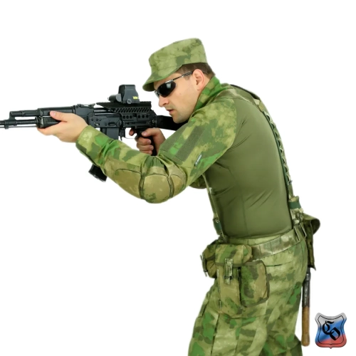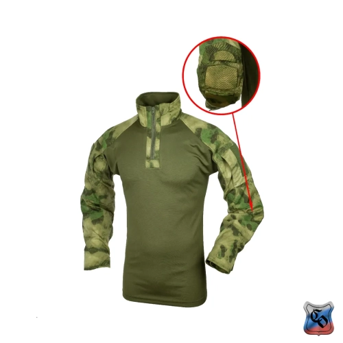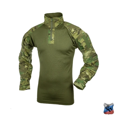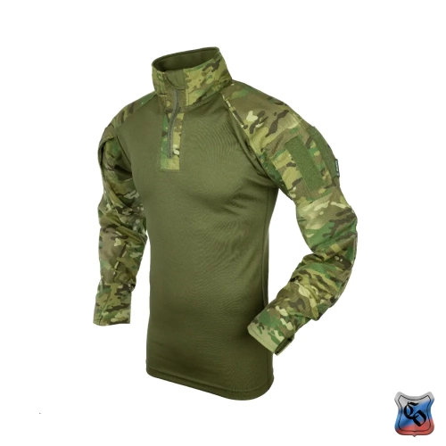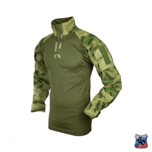 Рубашка КОМБАТ тип 3 • Боевая рубашка предназначена для использования в тёплом и жарком климате в сочетании с бронежилетами разных типов. • Тело рубашки выполнено из лёгкого синтетического материала – Coolmax. Этот материал хорошо зарекомендовал себя в производстве спортивной одежды за свои высокие характеристики. Он очень хорошо отводит лишнее тепло и быстро сохнет. Материал мягкий и приятный в носке при интенсивных физических нагрузках и в жарком климате. • Плечи и рукава рубашки в зависимости от цвета выполнены либо из более плотной ткани Rip-Stop, либо из облегчённой ткани Панацея с усилением более толстой нитью через каждые 8 мм создающей внутреннюю сетку. Состав: 67% полиэфир, 33% вискоза. Ткань несколько тоньше, чем у большинства существующих боевых рубашек, что является плюсом для использования в жарком климате. • У рубашки ворот-стойка, для того чтобы защитить шею пользователя от натирания ружейным ремнём, горловиной бронежилета или поддерживающими пояс лямками. • Застёгивается ворот на качественную молнию от американской фирмы IDEAL. Верхняя часть молнии, которая обычно натирает подбородок закрывается планкой, которая сделана длиннее молнии и заворачивается во внутрь. • На рукавах есть 2 накладных кармана на молниях. Молния пришита заподлицо, чтобы за замок ничего не цеплялось. Со стороны выглядит так, будто молнии вообще нет. • Поверх карманов нашита мягкая часть липы для крепления нашивок и опознавательных знаков. • Низ рукавов достаточно широкий, что обеспечивает хорошую вентиляцию предплечья не заворачивая рукав наверх, сохраняя маскировку. По ширине регулируется хлястиком с липучкой. • Интегрированная защита локтей состоит из 3х сегментов из ткани Cordura или Кордон (в зависимости от выбранного цвета) со вспененным полимером внутри. • Вес рубашки размера 48-50/4 в расцветке A-Tacs FG ~ 362 г.