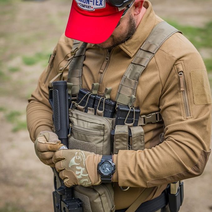 Ткань приятна на ощупь и быстро сохнет. Боковины сделаны из материала VersaStretch, который защищает зоны подверженные износу от ружейного ремня и ремень навесного оборудования.