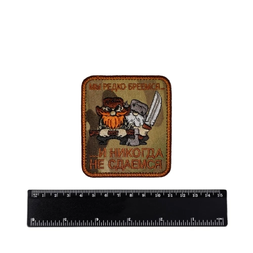 Шеврон Мы редко бреемся и никогда не сдаёмся вышивка