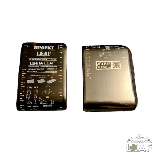 СКАЧАТЬ СЕРТИФИКАТ Складная фиксирующая шина Проект LEAF • Размер 36'' (90 см). • Многоразовая. • Водонепроницаемая (можно использовать под водой. • Рентгенопрозрачная (не нужно снимать на рентгене). • Компактная (можно свернуть или сложить для удобного хранения). • Крепится на месте с помощью бинта или обертывания. • Без латекса. • Имеет закрытую пористую поверхность, благодаря чему легко чистить и дезинфицировать различными средствами. • Универсальная (фиксация ноги, колена, голеностопа, руки, кисти, либо шеи). • Вес – 153 г. • Рег. номер – RU.32468.04ЛЕГО.ОО3.01410 (Система добровольной сертификации «ЛЕГИОН С»).