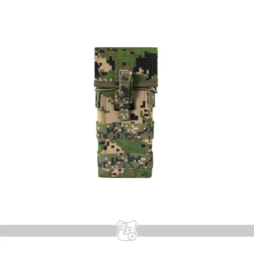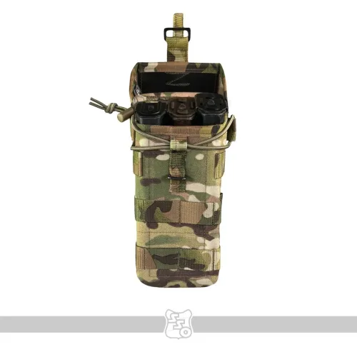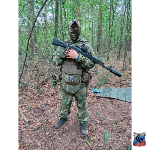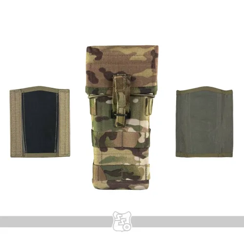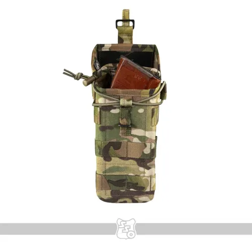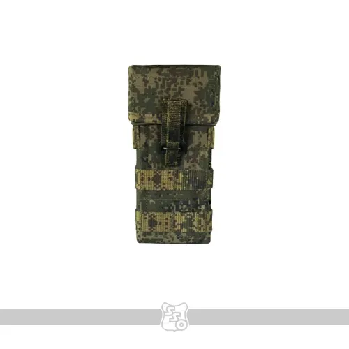 АК 2 MOLLE с бесшумной застёжкой и утяжкой Сумка предназначена для размещения двух магазинов к патронам калибра 7,62 к автомату АКМ или трёх магазинов 5,45 к автомату АК-74М. Сумка представляет из себя базовый элемент первого эшелона снаряжения. • Магазины разделены съёмной перегородкой, плотно сидят и удобно достаются в перчатках. • Магазины к АК-74М рекомендуется укладывать передними зацепами магазина к передней стенке сумки, предварительно сняв внутреннюю перегородку. При такой укладке в сумку помещается три магазина. • Для того чтобы увеличить срок службы подсумка и обеспечить быстрое извлечение магазинов, передняя стенка усилена пластиковой вставкой, по которой должен скользить передний зацеп магазина. • Сумка закрывается на глухой клапан с пластиковой вставкой. Такая конструкция хорошо защищает содержимое сумки от пыли и грязи и фиксирует магазины при открытой застёжке. Клапан фиксируются с помощью бесшумной застёжки, которая позволяет очень тихо извлекать магазин из сумки одной рукой. Возможно два варианта исполнения бесшумной застёжки. Застёжка клапана QRF (Quick Release Fastener) образца 1958 года, которая сделана из стали, дюраля и полиамидных ремней. Либо бесшумная застёжка производства корейской компании Woojin, которая состоит из ацеталя и полиамидных ремней. QRF быстрее застёгивается, вариант от компании Woojin быстрее расстёгивается. Тип застёжки зависит от конкретной партии сумок. • Для того, чтобы магазины не соударялись между собой, верх сумки утягивается эластичной стяжкой со стопором. • Если того требует ситуация, можно снять перегородку и использовать сумку для переноски других схожих по габаритам предметов. • Для размещения на сумке дополнительного снаряжения по бокам и на передней панели нашиты ячейки Molle. • Клапан и дно сумки усилены вторым слоем ткани. • На дне есть отверстие с люверсом для слива воды. • На снаряжении сумка занимает 2 ячейки Molle. • При необходимости подсумок можно устанавливать не только на Molle основу, но и на ремни, сделав из строп петли нужного размера. Габариты • Высота – 22,5 см. • Длина – 10 см. • Ширина – 7,5 см. • Вес пустого подсумка из ткани плотностью 500D ~ 180 г.