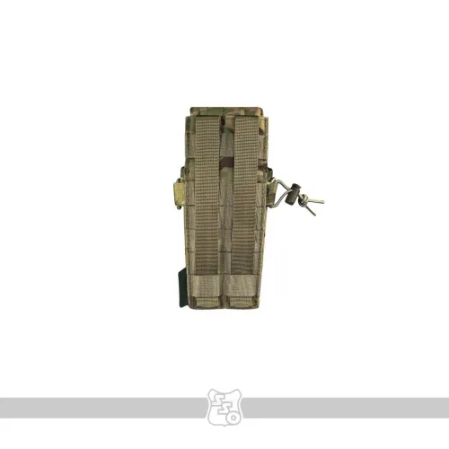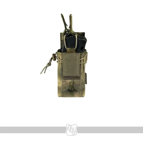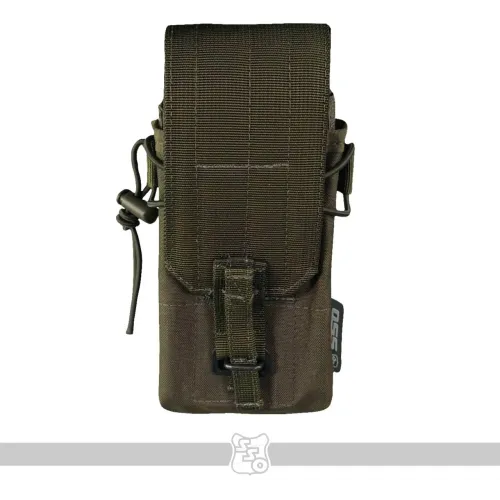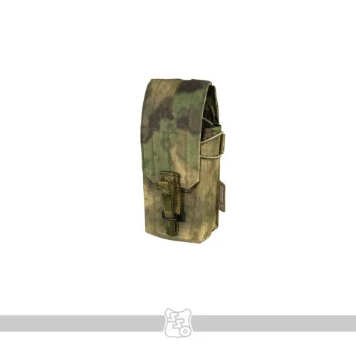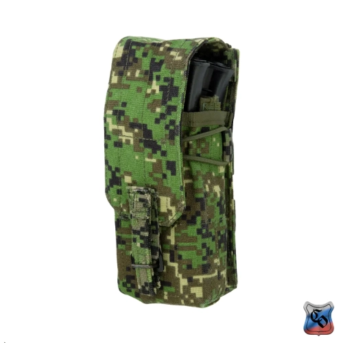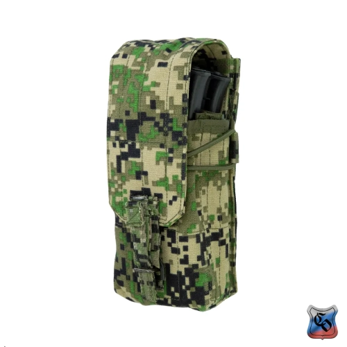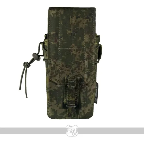 Сумка АКМ 2 MOLLE МОДУЛЬНЫЙ со съёмным, регулируемым по высоте клапаном • Данная сумка является наиболее универсальным решением для переноски двух магазинов к АК. При необходимости вариант закрытой сумки с клапаном, можно переоборудовать в сумку с максимально быстрым доступом к магазинам, фиксация которых происходит с помощью съёмных эластичных шнуров с флажками. Это возможно благодаря съёмному клапану, закреплённому с помощью липучки. Такая конструкция позволяет не только снимать клапан при необходимости, но и регулировать его длину под каждый тип магазинов. • Высота стенок основного отсека сумки подобрана таким образом, чтобы бойцу было удобно извлекать магазин полным хватом, даже в зимних перчатках. • В закрытом варианте, фиксация магазинов в сумке происходит с помощью клапана с комбинированной застёжкой: липучка и бесшумная застёжка. Возможно два варианта исполнения бесшумной застёжки. Застёжка клапана QRF (Quick Release Fastener) образца 1958 года, которая сделана из стали, дюраля и полиамидных ремней. Либо бесшумная застёжка производства корейской компании Woojin, которая состоит из ацеталя и полиамидных ремней. QRF быстрее застёгивается, вариант от компании Woojin быстрее расстёгивается. Тип застёжки зависит от конкретной партии сумок. • Для того, чтобы магазины не соударялись между собой, верх сумки утягивается эластичной стяжкой со стопором. • Высота клапана регулируется. Для этого нужно продеть линейку или другой аналогичный предмет между клапаном и задней стенкой сумки, чтобы разъединить мягкую и жёсткую части липучки. После этого вы вставляете в неё магазины которые будут использоваться и застёгиваете бесшумную застёжку. Когда эти манипуляции проведены, необходимо прижать клапан к задней стенке, чтобы соединить между собой обе части липучки. • Благодаря регулируемому по высоте клапану, вместо двух магазинов к автомату, можно использовать один магазин на 45 патронов от РПК. В таком случает нужно будет вытащить съёмную перегородку и после регулировки высоты клапана утянуть подсумок эластичной стяжкой со стопором. • Если требуется бесшумное открытие клапана, мягкую часть липучки можно закрыть панелью с крючками, которая убирается на изнанку, когда не используется. • В варианте быстрой сумки без клапана, фиксация магазинов происходит с помощью съёмных эластичных шнуров с флажками. Шнуры устанавливаются в петлю передней панели, петлю на перегородке и в отверстия с люверсами на задней стенке сумки. • Магазины разделены съёмной перегородкой, плотно сидят и удобно достаются в перчатках. • Если того требует ситуация, можно снять перегородку и использовать сумку для переноски других схожих по габаритам предметов. • Для того чтобы сумка лучше держала форму и ей было удобнее пользоваться в переднюю стенку вшит лист пластика толщиной 1 мм. • Дно сумки усилены вторым слоем ткани. • На дне есть отверстие с люверсом для слива воды. • На снаряжении сумка занимает 2 стандартные ячейки Molle. • При необходимости сумку можно устанавливать не только на Molle основу, но и на ремни, сделав из строп петли нужного размера. Габариты: • Высота со снятым клапаном – 21 см. • Высота при использовании магазинов под калибр 5,45 – 21 см. • Высота при использовании магазинов под калибр 7,62 – 22 см. • Ширина – 9 см. • Глубина – 8 см. • Вес пустого подсумка из тк