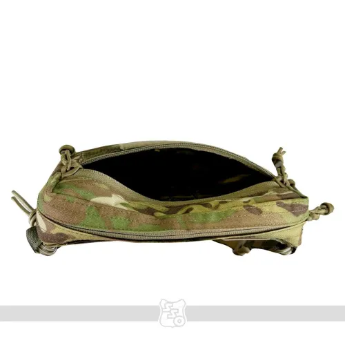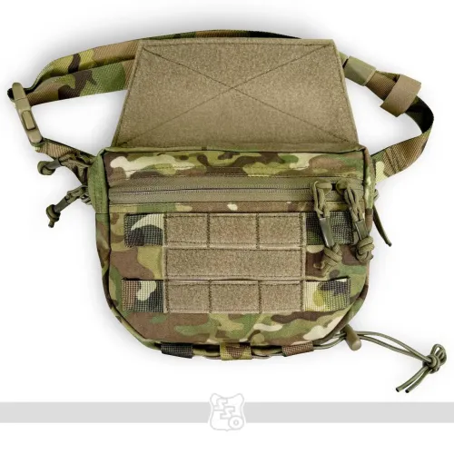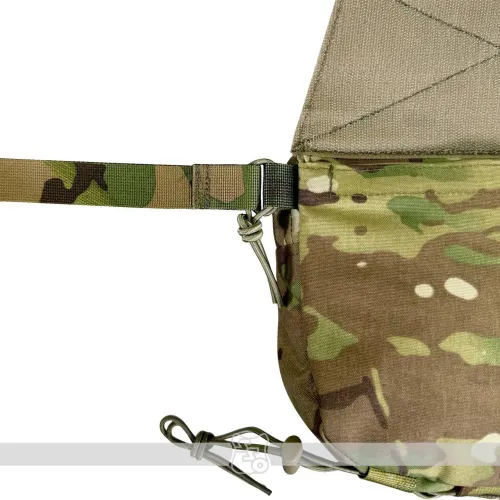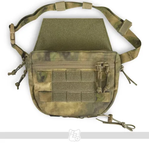 СКАЧАТЬ ЧЕРТЕЖИ ДЛЯ МЯГКИХ БРОНЕЭЛЕМЕНТОВ К СУМКЕ ГРОМ PRO Сумка ГРОМ PRO • Напашная сумка ГРОМ PRO предназначена для размещения дополнительного имущества и средств первой помощи, к которым необходим быстрый доступ. • Теперь появилось две возможности крепления сумки: 1) на липучку под клапаном передней панели чехла ПАНЦИРЬ или его аналогов 2) в качестве самостоятельной сумки со съемным поясом из ременной ленты 25мм и шнура-резинки 3,5мм. • Благодаря тому, что ширина сумки всего 4 см, она не увеличивает габариты бронежилета. Эргономичный крой не мешает движениям. • Молния сумки теперь расположена как сверху, так и спереди сумки в два отдельных кармана. Это обеспечивает более удобный доступ к её содержимому даже тогда, когда на переднюю панель плитника или бронежилета установлено дополнительное снаряжение. Вместо металлических подвесов на замках установлены шнуры с термоусадочными трубками. Так удобнее пользоваться в перчатках, а также уменьшается лишний шум из-за звона металла о металл. • На внешней стороне сумки есть Molle ячейки для крепления дополнительного снаряжения, поверх которых нашита липучка для крепления патчей. • Сумка имеет хорошо развитую внутреннюю организацию. Теперь помимо задней стенки и на переднюю нашиты петли из эластичной резинки для крепления различных мелких предметов: магазина под пистолет, мультитула, складного ножа, батареек, ИПП и других полезных мелочей. • На дне расположено два отверстия с люверсом для слива воды. • На дне с внешней стороны добавлена ременная лента с эластичным шнуром-резинкой для крепления жгута-турникета или другой необходимой мелочи. • На задней стенке появился еще один многофункциональный карман, в который можно расположить противоосколочные пакеты. Также данный карман служит для того, чтобы убрать в него велкро-панель для крепления сумки на бронежилет в случае ее ношения как самостоятельной сумки. *Сумка поставляется без содержимого. Габариты: • Высота – 16 см. • Длина по верху – 22 см. • Длина по низу – 12 см. • Ширина – 4 см. • Вес сумки из ткани плотностью 500D ~ 240 г.