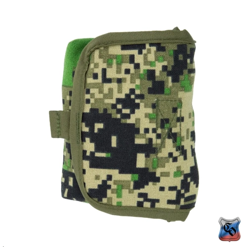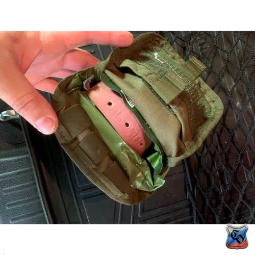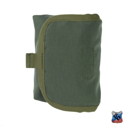 Сумка ИПП MOLLE на липучке Подсумок под медицинский индивидуальный перевязочный пакет. • Клапан сумки закрывается на липучку. Полотно как мягкой, так и ответной жёсткой части липучки достаточно широкие, чтобы не переживать за сохранность содержимого. • При раскрытии сумки, помимо доступа к основному отделению, появляется доступ к карману внутри клапана. Он застёгивается на липучку и позволяет разместить в нём резиновый жгут или другие небольшие медицинские принадлежности. • В передней стенке подсумка ткань на 4 см длиннее внешней стенки. На этом участке нашиты три эластичные ленты и он подвёрнут внутрь. Этот участок с нашитыми на него тремя эластичными лентами подвёрнут внутрь аптечки. Он предназначен для размещения в нём ампулы с обезболивающим в тубусе. • На снаряжении сумка занимает 2 ячейки Molle. • При необходимости подсумок можно устанавливать не только на Molle основу, но и на ремни, сделав из строп петли нужного размера. Габариты: • Высота – 15 см. • Длина – 10 см. • Ширина – 5 см. • Вес пустой сумки из материала плотностью 500D ~ 75 г.