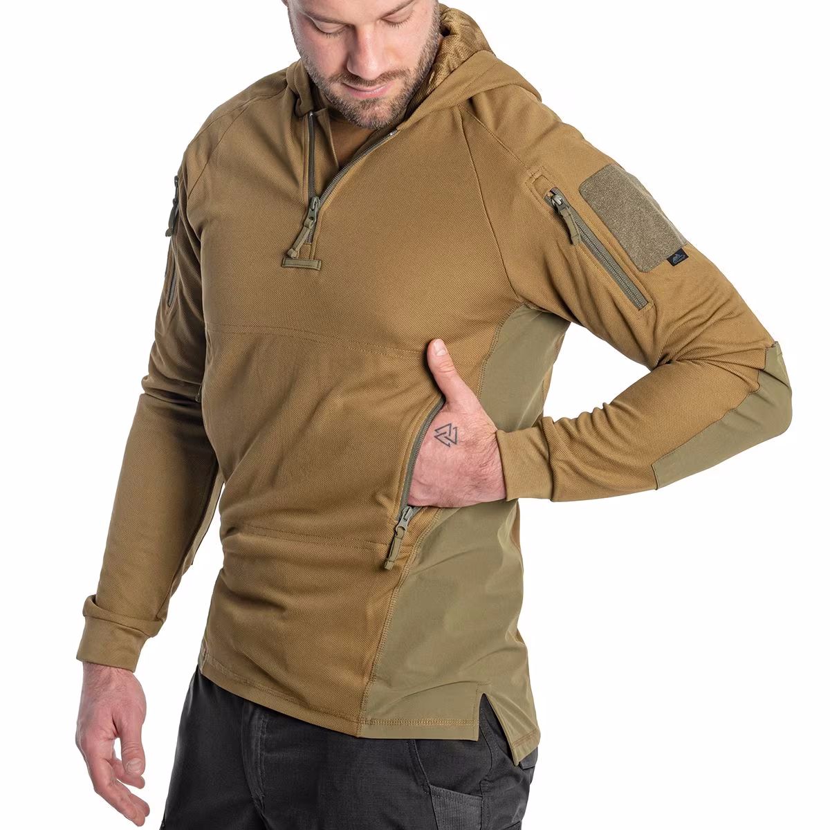 Сочетание эластичных и износостойких материалов делает эту толстовку подходящей для интенсивной работы с оружием.