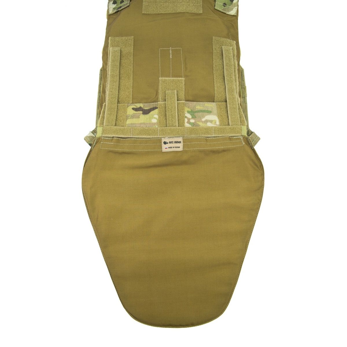 Модуль защиты паха ARS размещается на фронтальной части бронежилета и защищает паховую зону от осколков, в чехле можно разместить пакеты классов Бр1 или Бр1А.