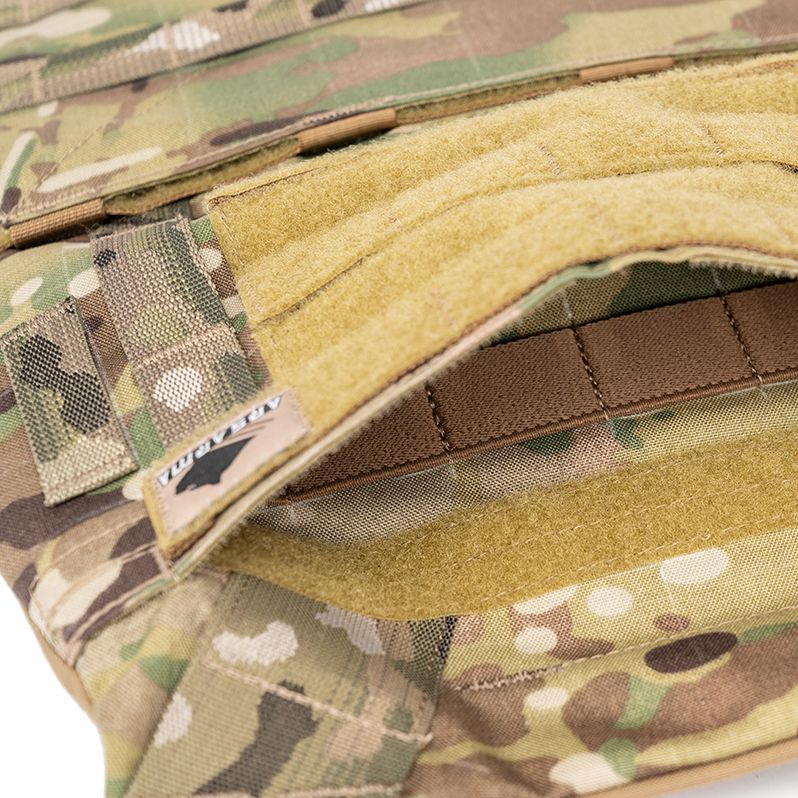 Большое внимание уделено эргономике жилета, широкой вариативностью комплектации, позволяющей собрать жилет под разные условия применения - от рейда до штурма.