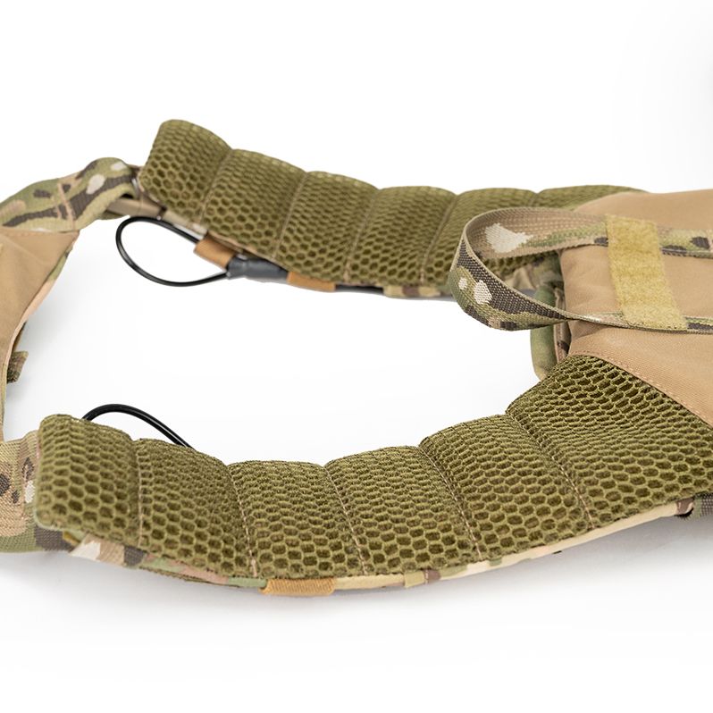 Лямки хорошо вентилируются благодаря крупноячеистой сетке и правильно переносят вес жилета на плечи благодаря своей форме.